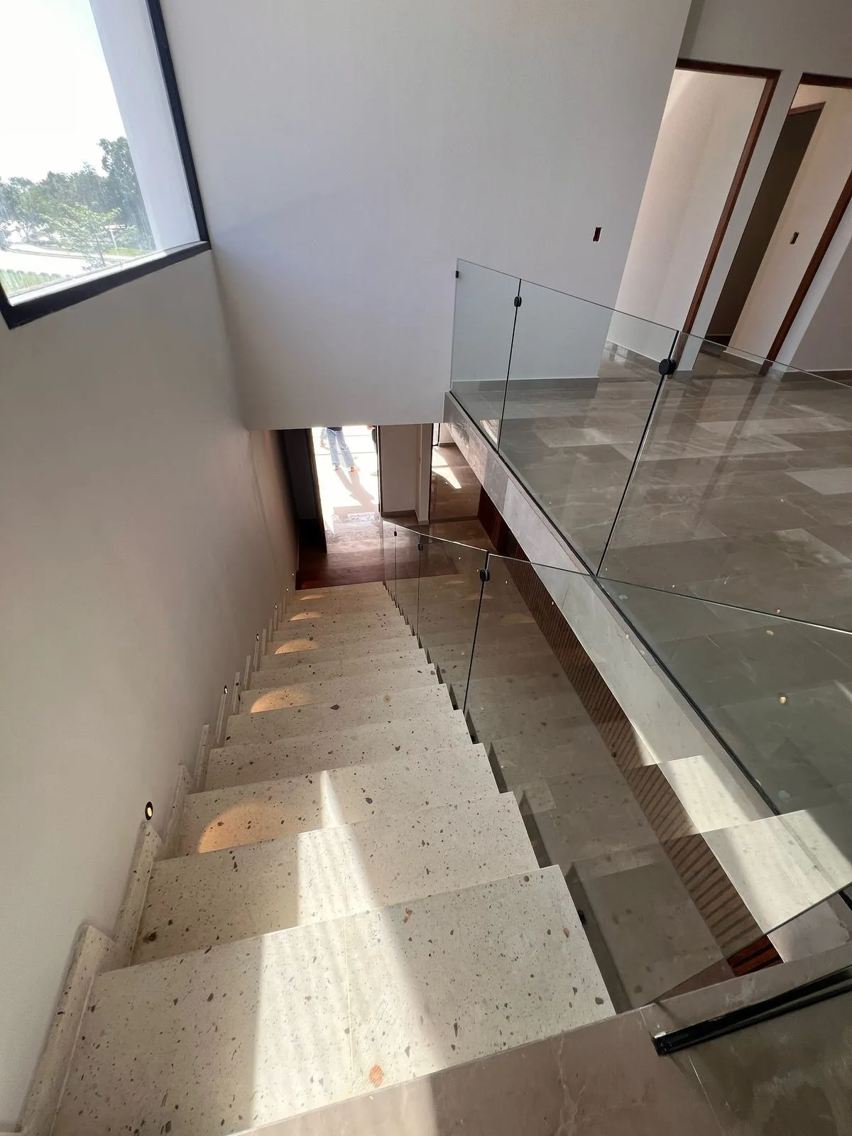 The first level contains the primary bedroom, which features a walk-in closet, a full bathroom, and a private gallery. Two secondary bedrooms each have a dressing area and independent access. This floor includes a TV room, an additional full bathroom, and terraces accessible from every bedroom, providing ventilation and a sense of visual spaciousness.