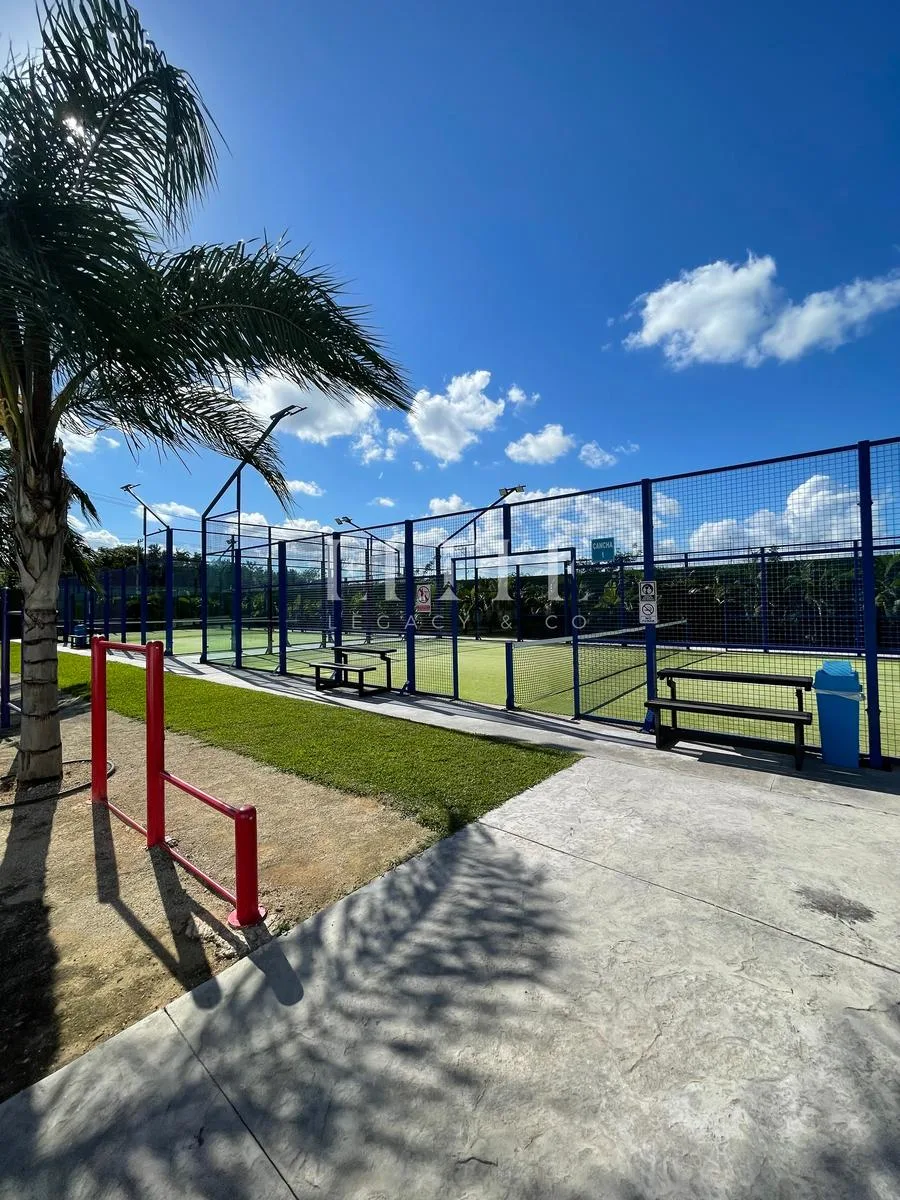 The residential community offers amenities including a children's park, a children's fountain, green trails, a fitness center with a gym, paddle courts, and a semi-olympic pool, as well as a recreational clubhouse with a family pool, gym, social area, and basketball court.