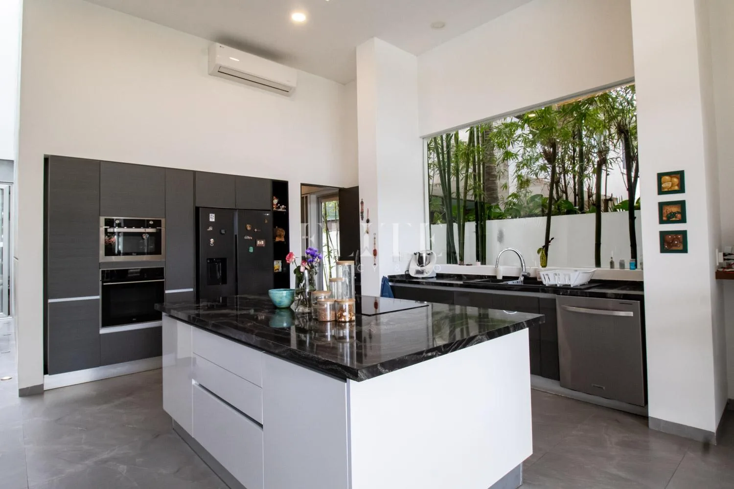 The property faces the main lake with sunset views and has private direct access to the canal from the garden for water activities. It has a North-South orientation, with the terrace side always in the shade.