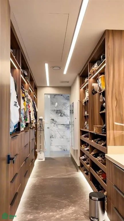 There are two additional bedrooms, each with a large dressing room and a shared double bathroom. An office or studio space offers the option to be used as a third bedroom, complete with its own bathroom and dressing room.