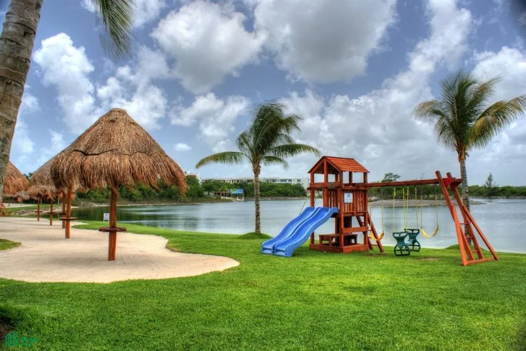 Further community facilities consist of an infinity path for running or skating, outdoor gyms, a skateboarding rink, a football field, a lake beach with a dock, a cafeteria, a terrace, and children's play areas. There are also three palapas for events and two multipurpose rooms.