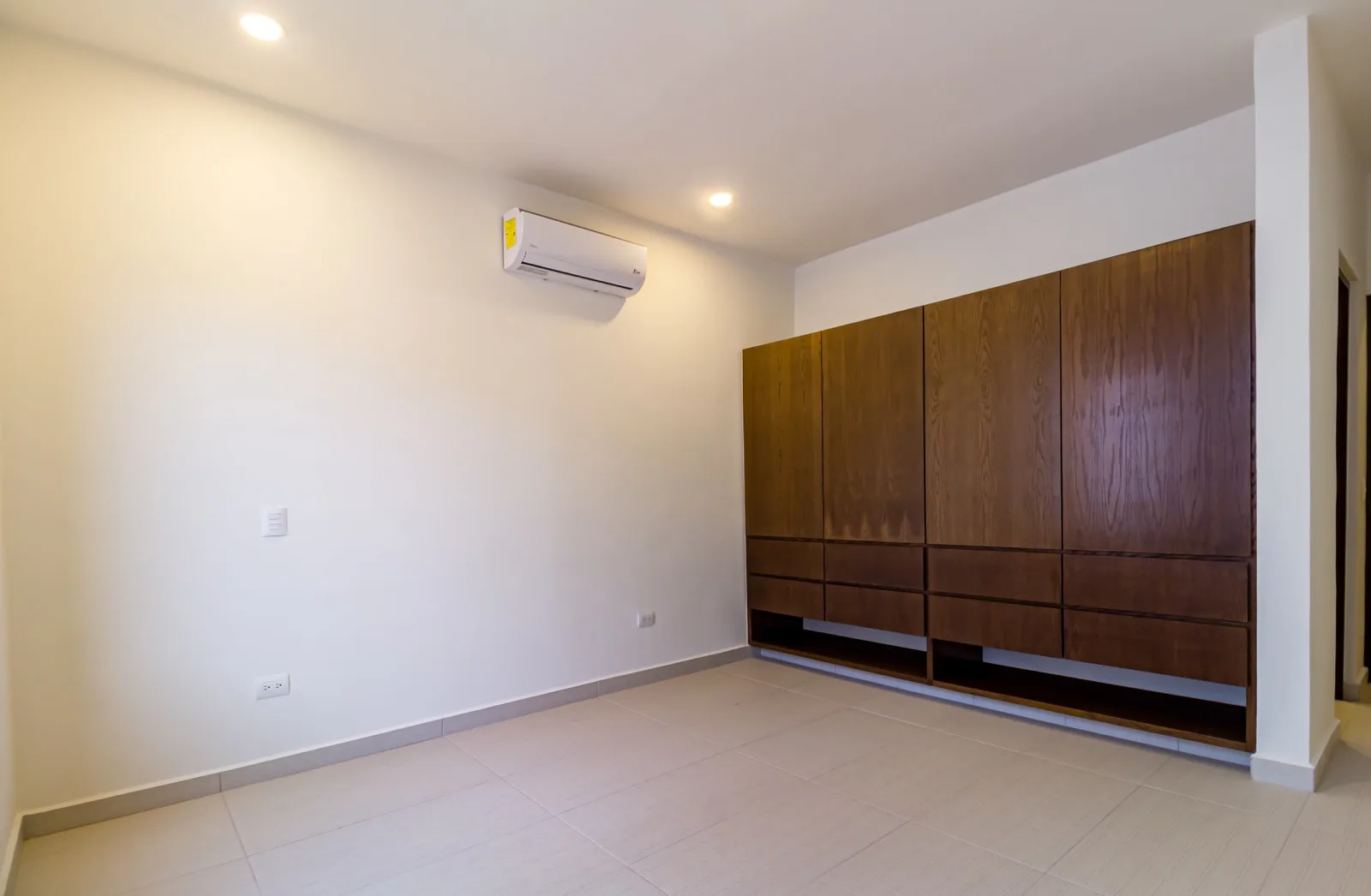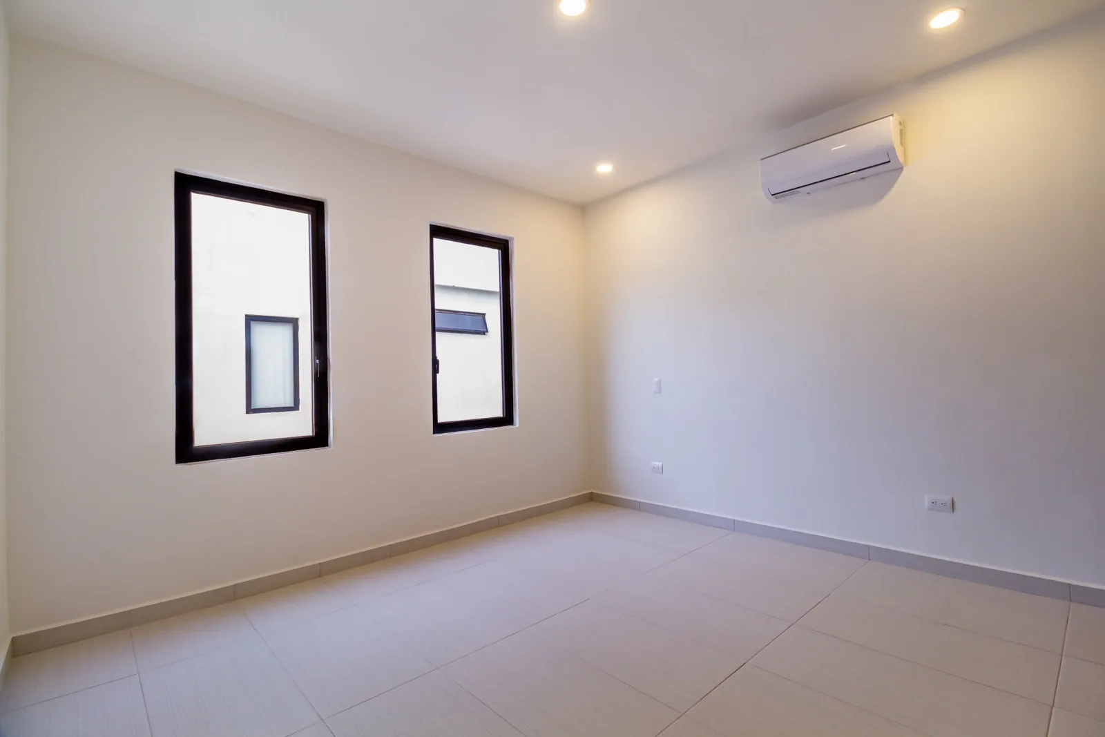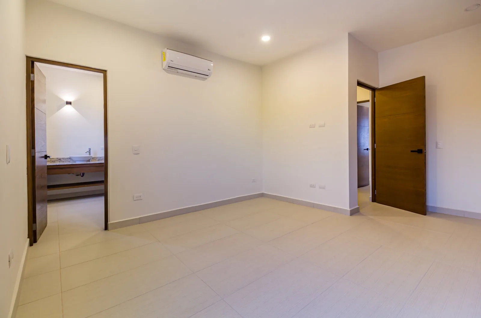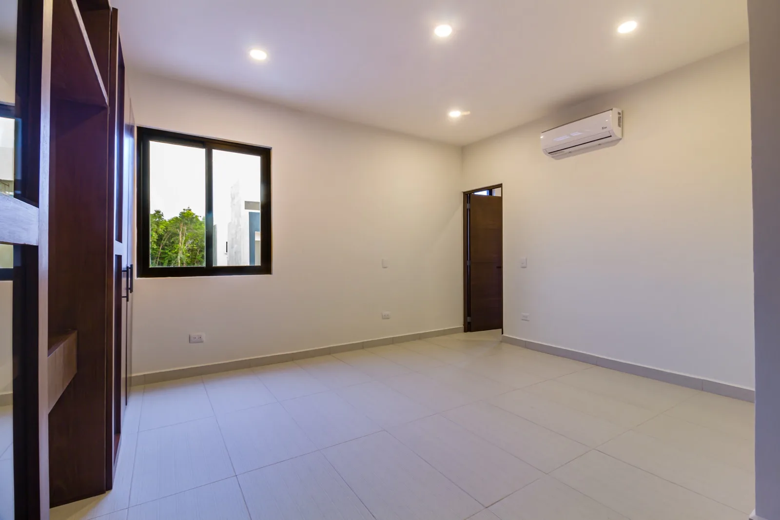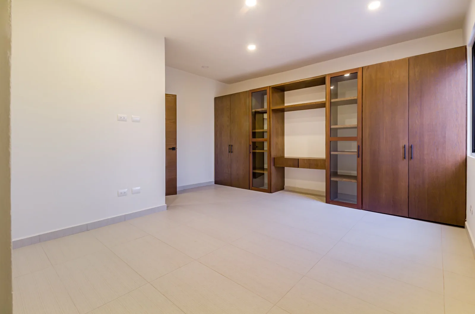 This brand new house offers 219 square meters of living space. The property features three bedrooms, each with parota wood closets.
