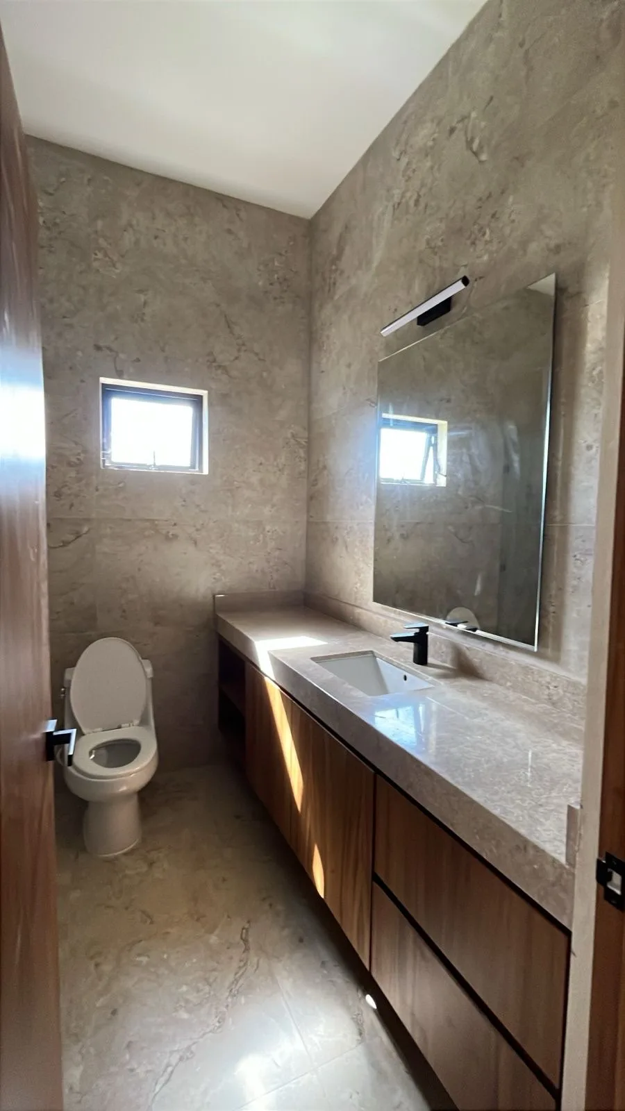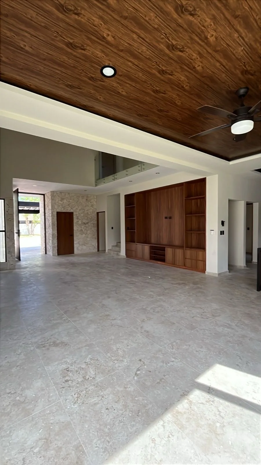 The entire house is equipped with air conditioning and ceiling fans. Bathroom doors feature tempered glass, while the kitchen has granite countertops and the bathrooms boast marble vanities. The property incorporates first-quality aluminum elements and parota wood carpentry throughout.