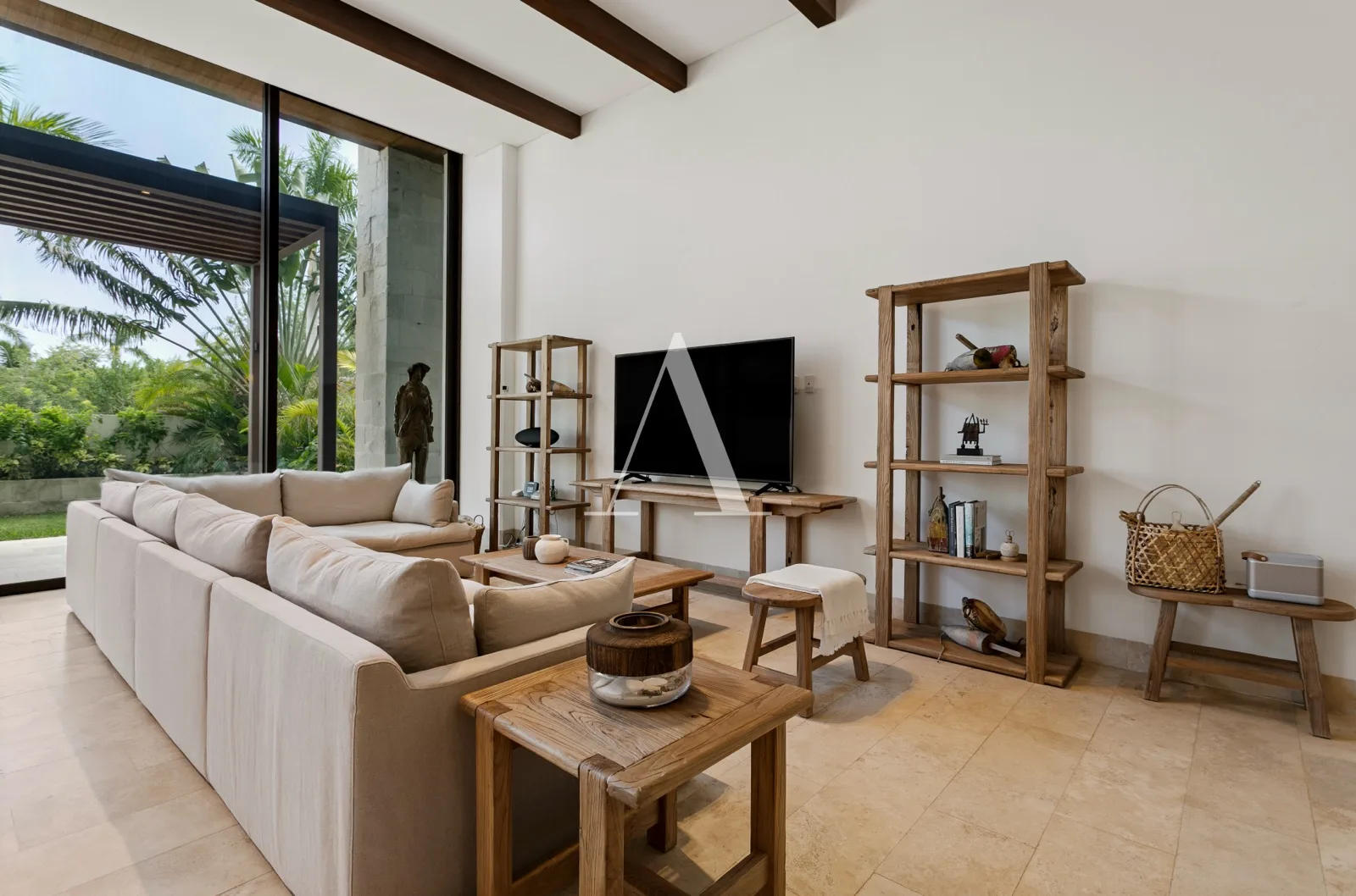 This garden house is distinguished by its higher-than-average ceilings, creating a greater sense of spaciousness. Large floor-to-ceiling windows allow for abundant natural light and exterior views.
