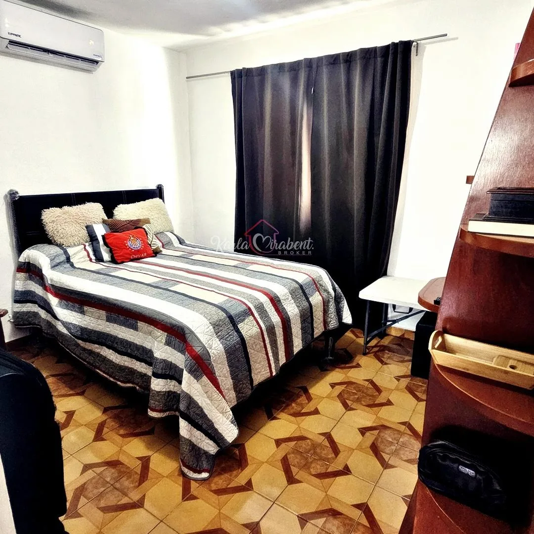 Parking is provided by two uncovered spaces. The construction is solid, featuring block walls, reinforced concrete slabs, and finishes of ceramic tile and porcelain. Extra features include an access gate, aluminum windows with protectors, and a backyard.