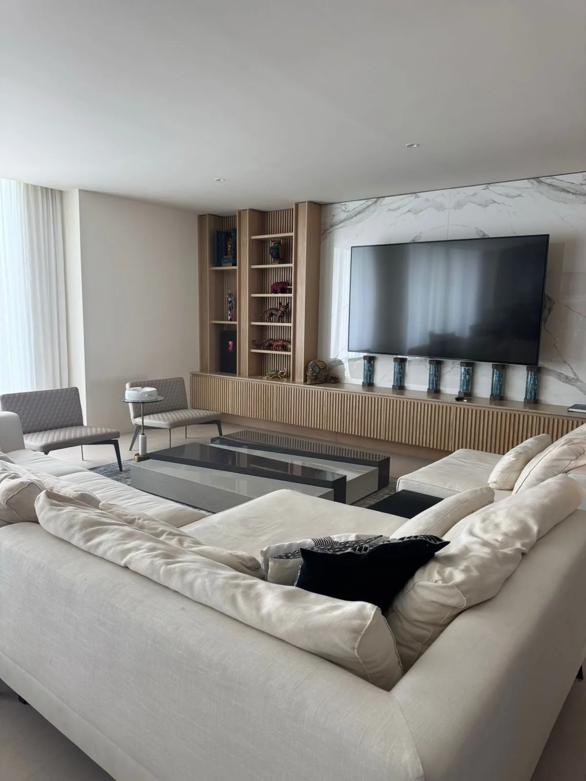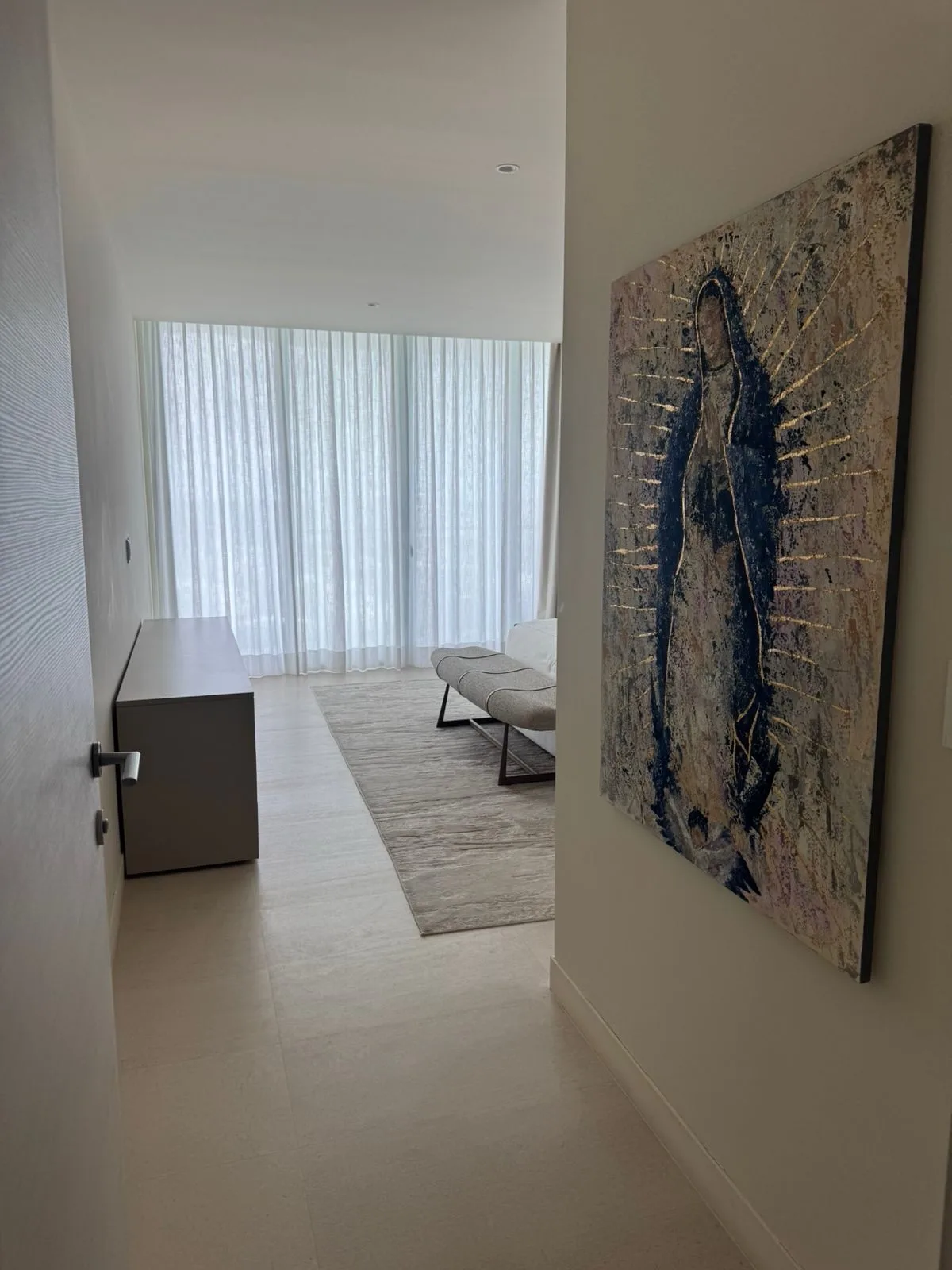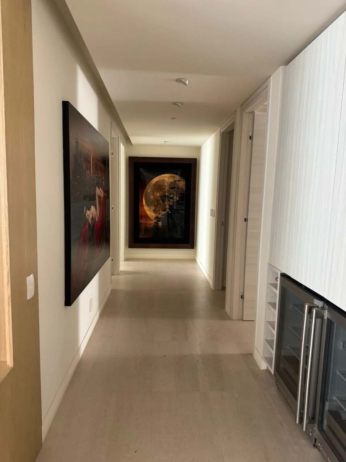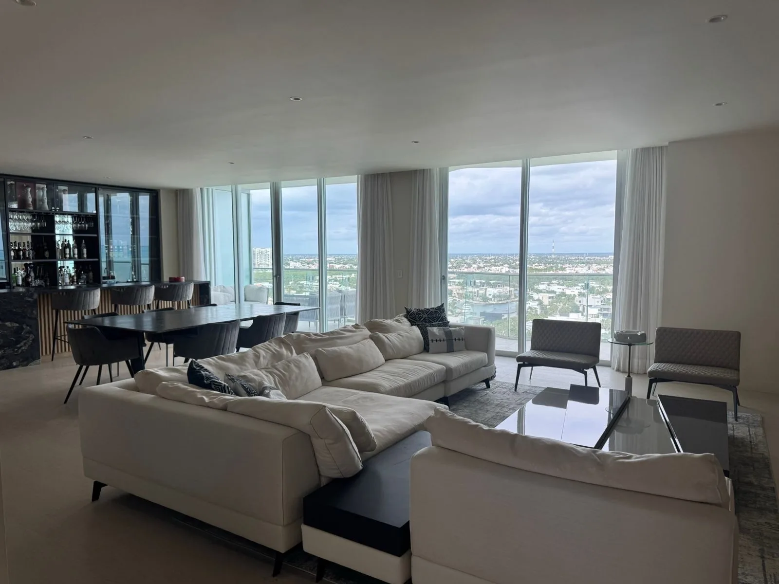 This residence is located on the 17th floor and encompasses 319 square meters. The layout includes a living room, a dining room, and a spacious kitchen. A terrace offers a view of the sea.