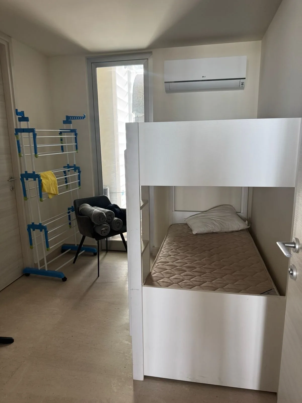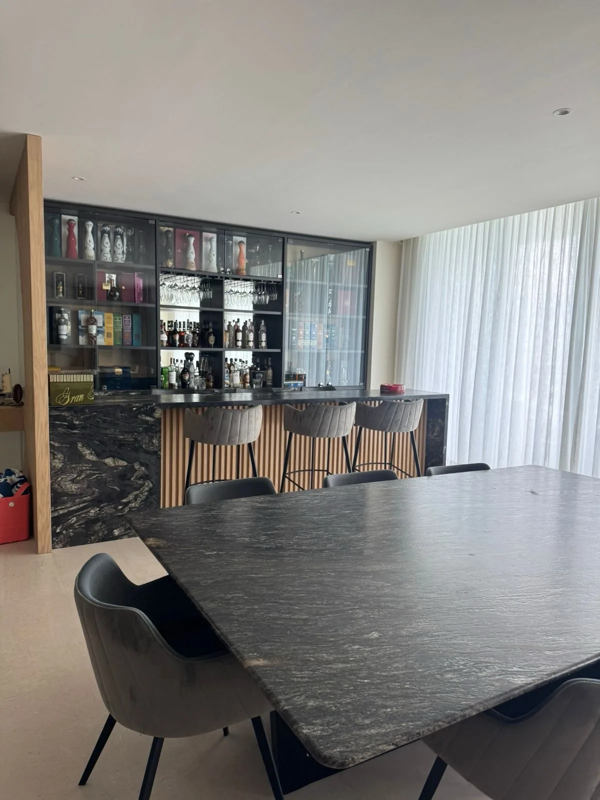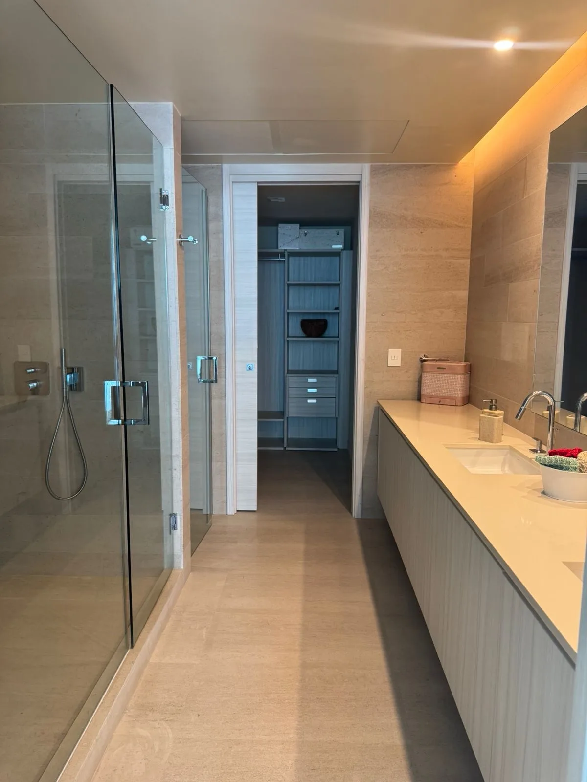 This residence is located on the 17th floor and encompasses 319 square meters. The layout includes a living room, a dining room, and a spacious kitchen. A terrace offers a view of the sea.