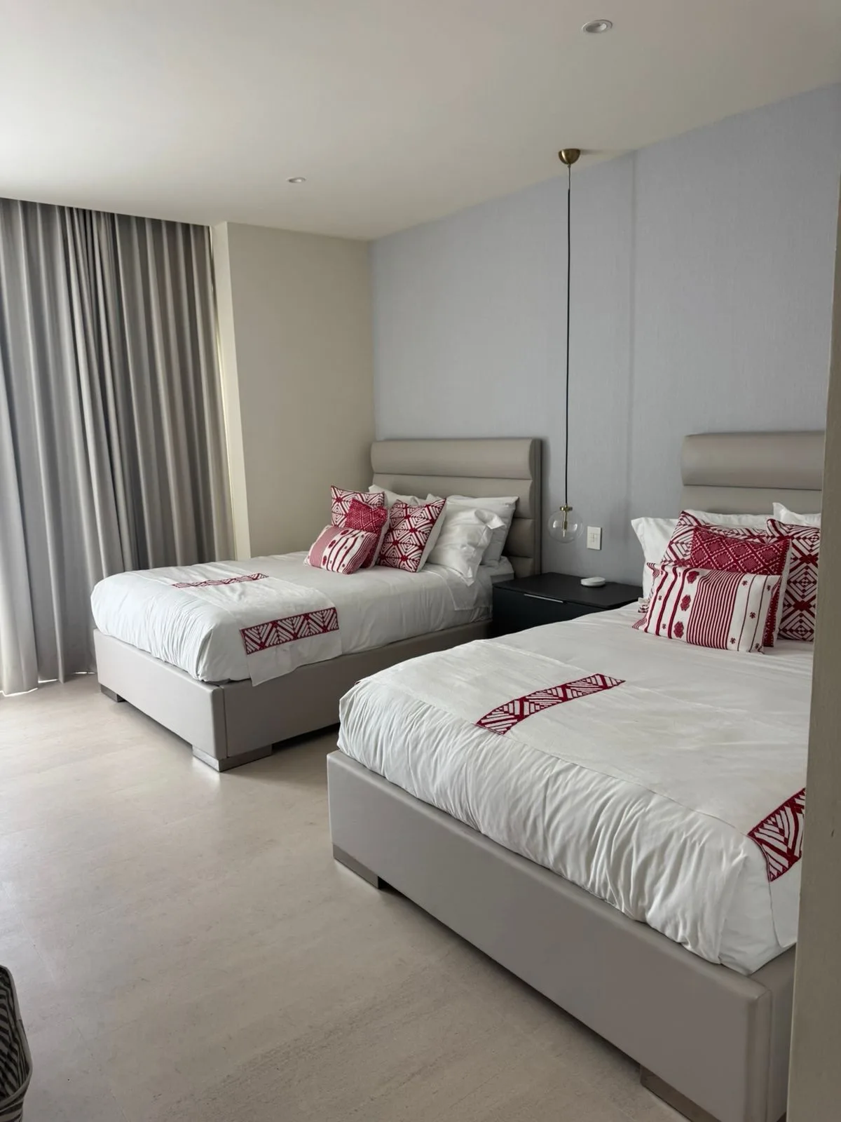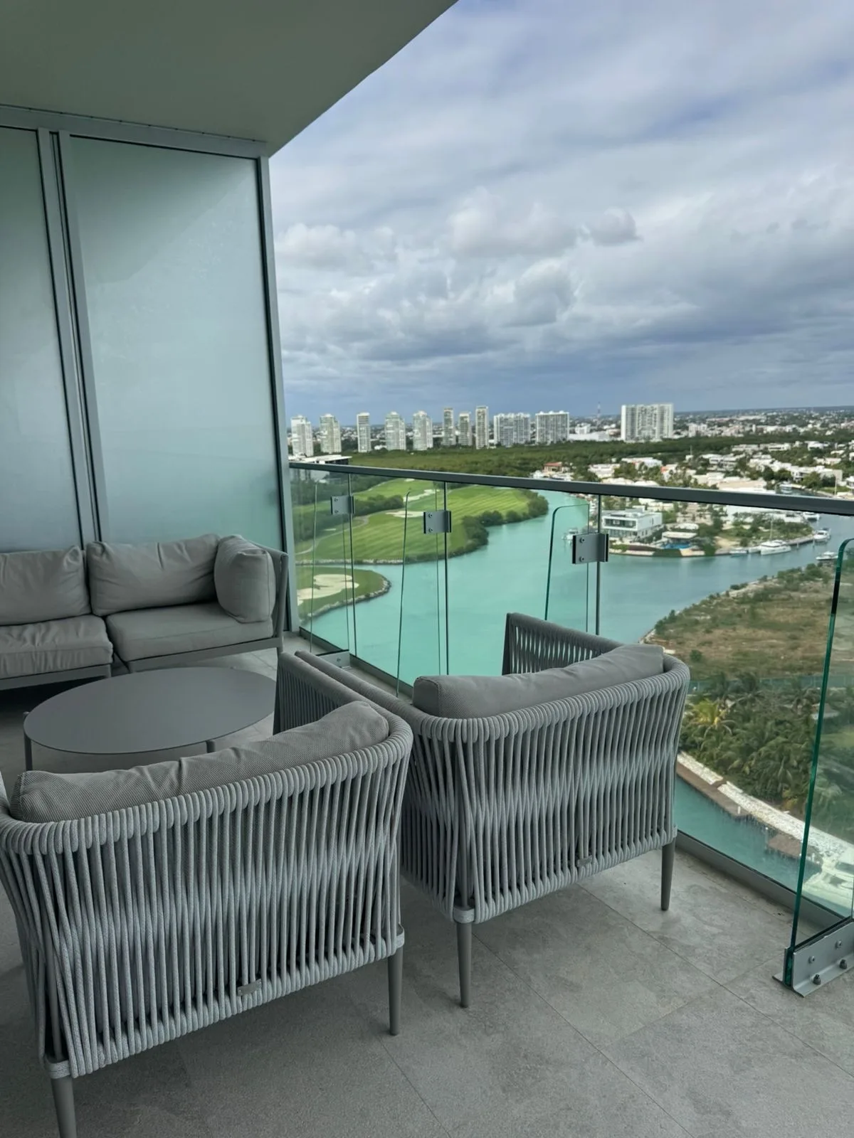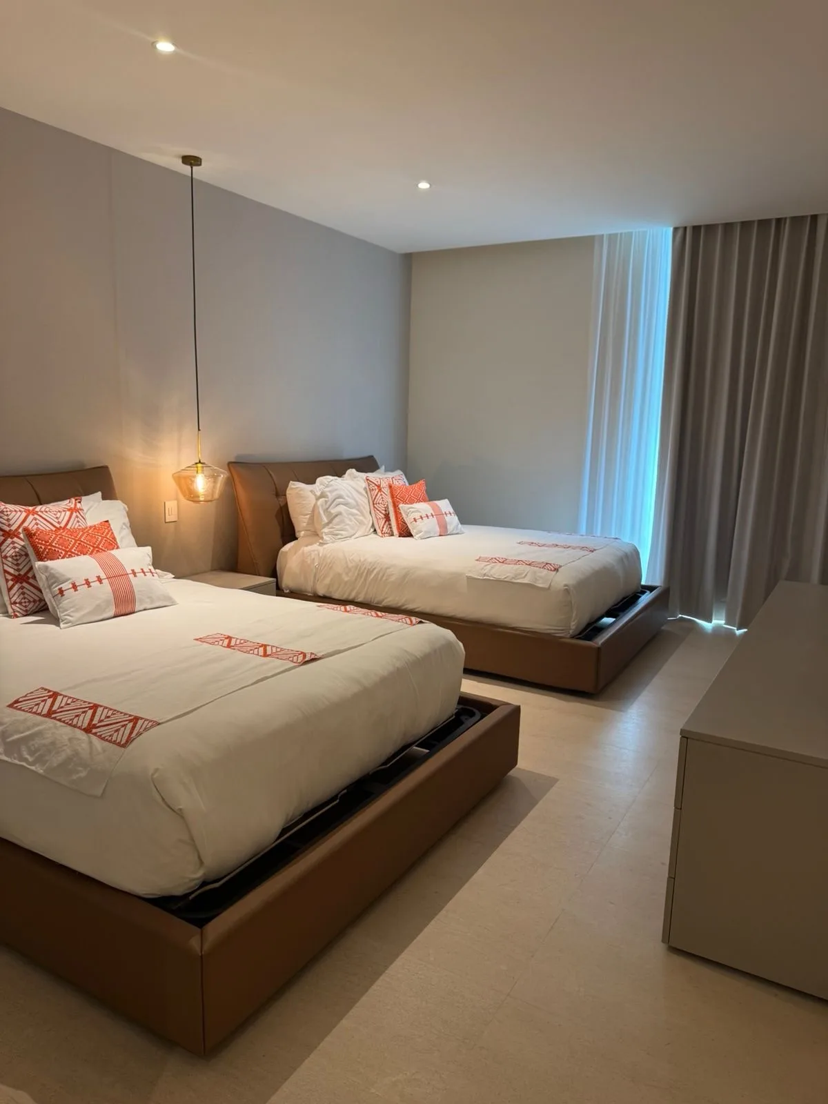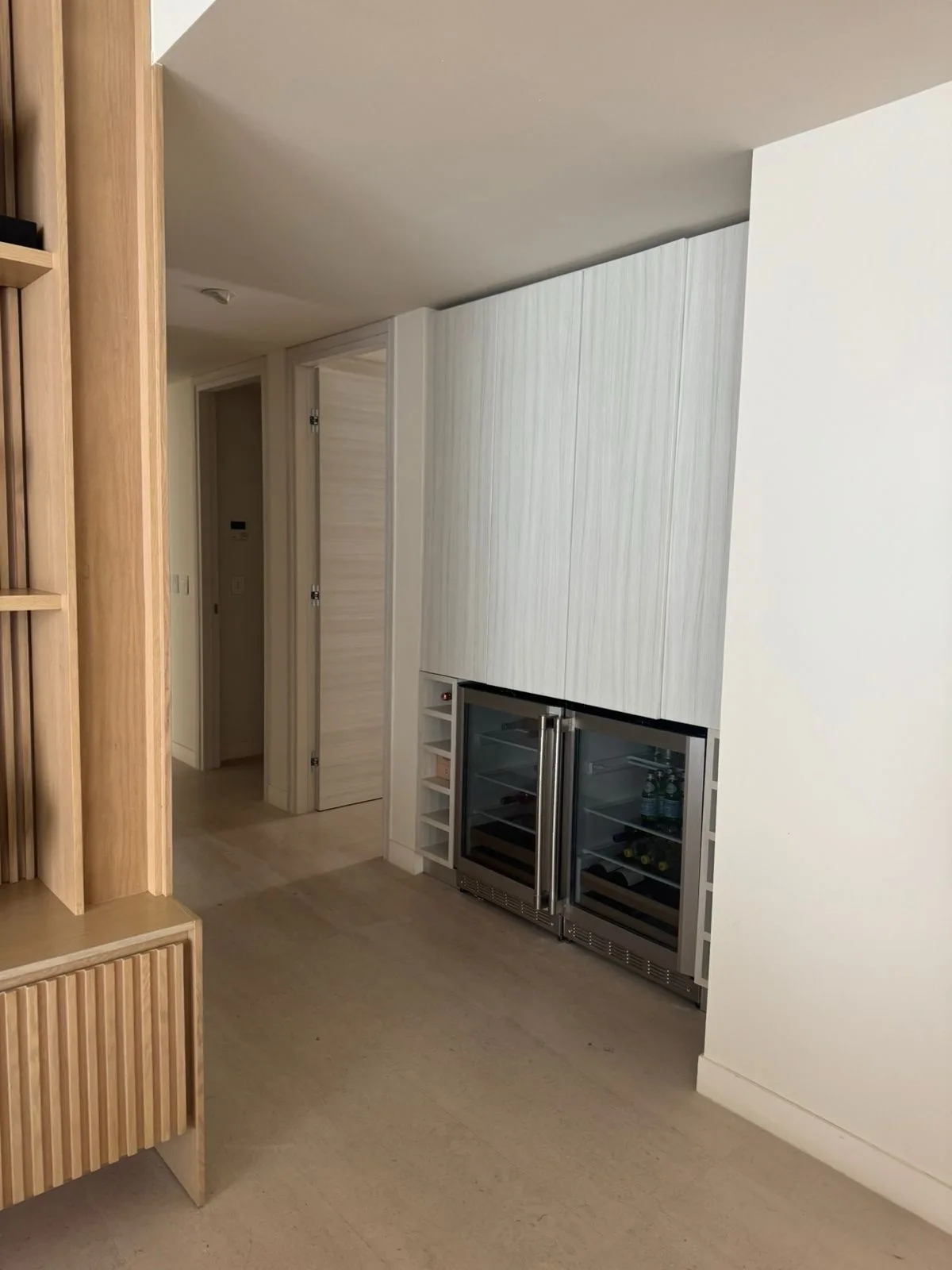 This residence is located on the 17th floor and encompasses 319 square meters. The layout includes a living room, a dining room, and a spacious kitchen. A terrace offers a view of the sea.
