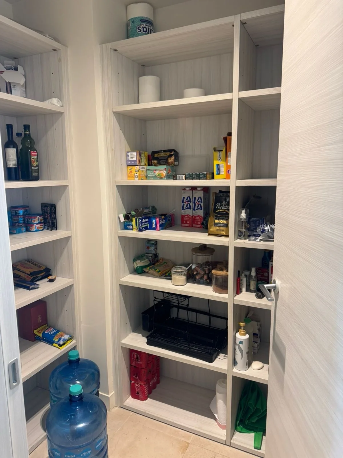 The property features four bedrooms, each with its own ensuite bathroom. There is also a guest half-bathroom, a dedicated laundry room, and a service room with a full bathroom. Two covered parking spaces are provided.