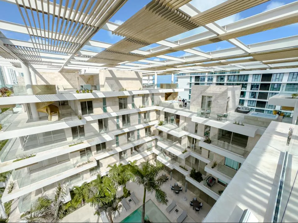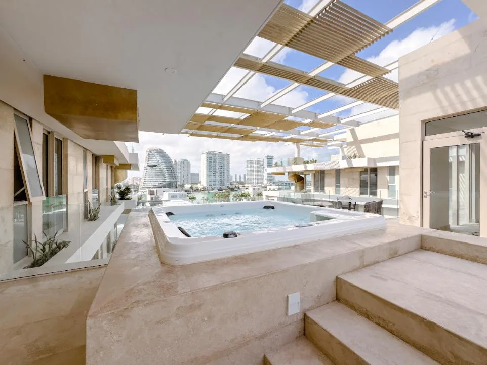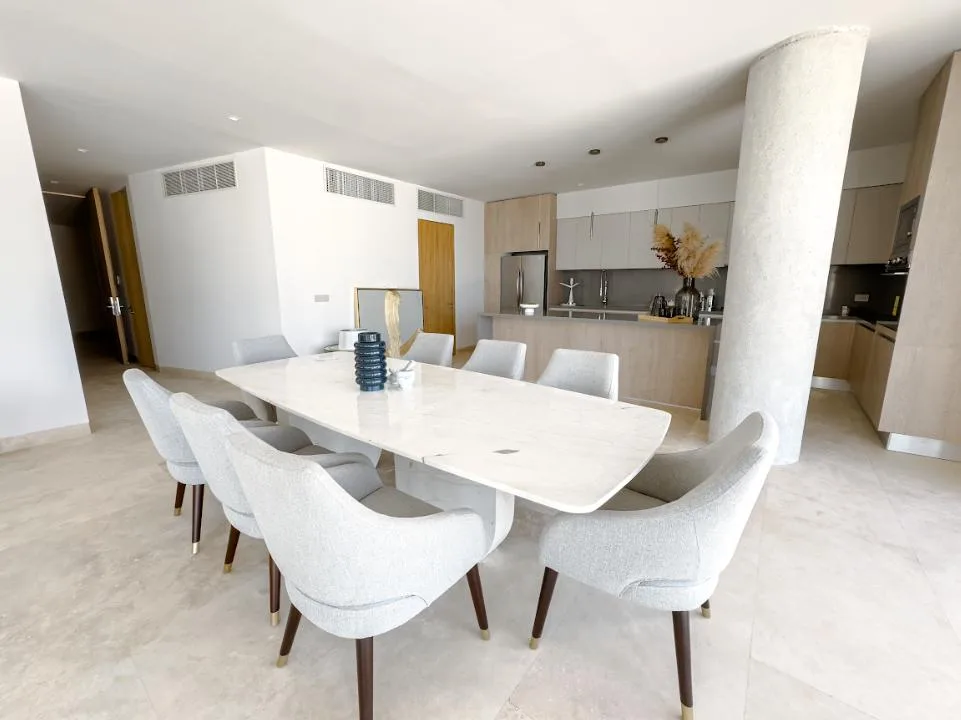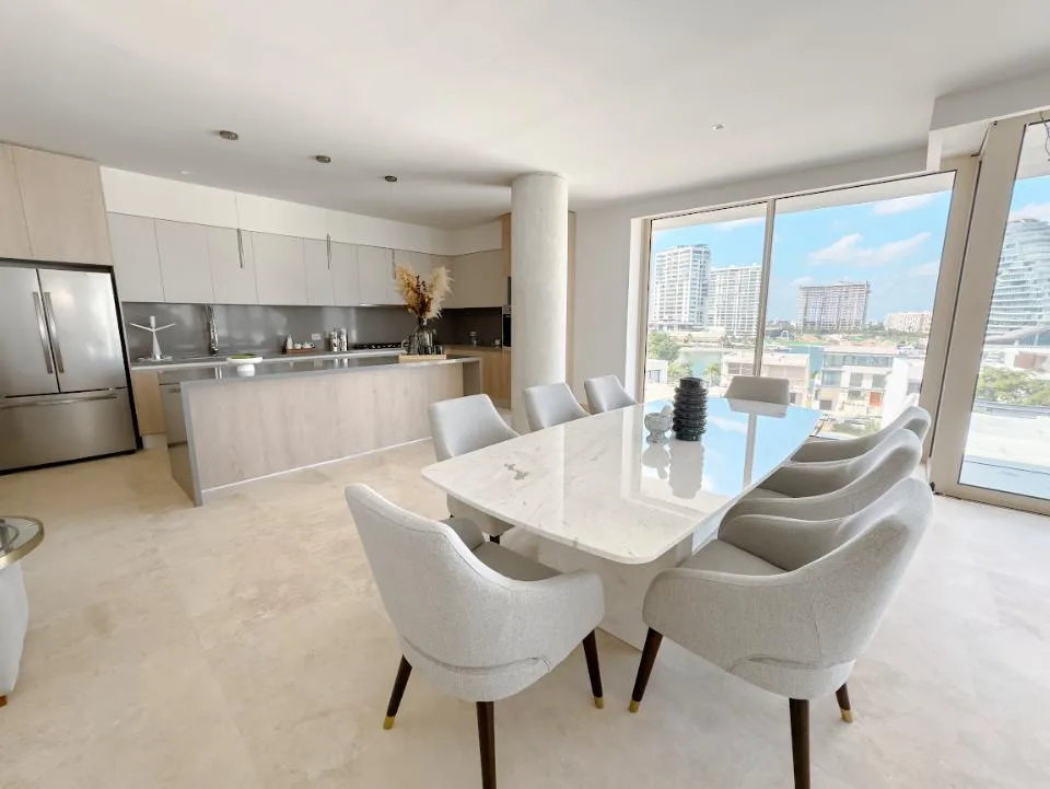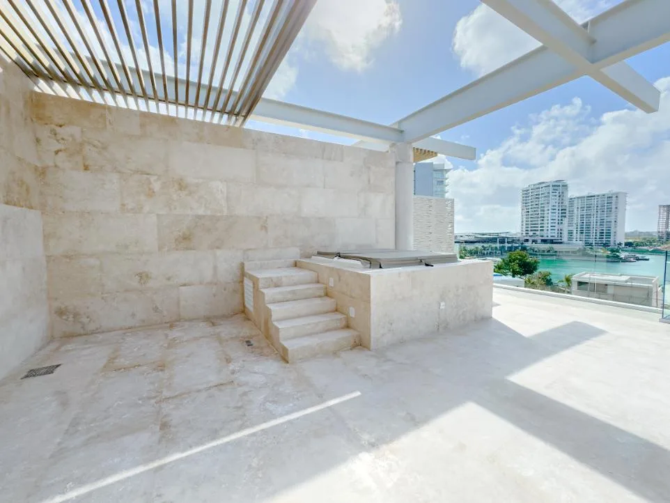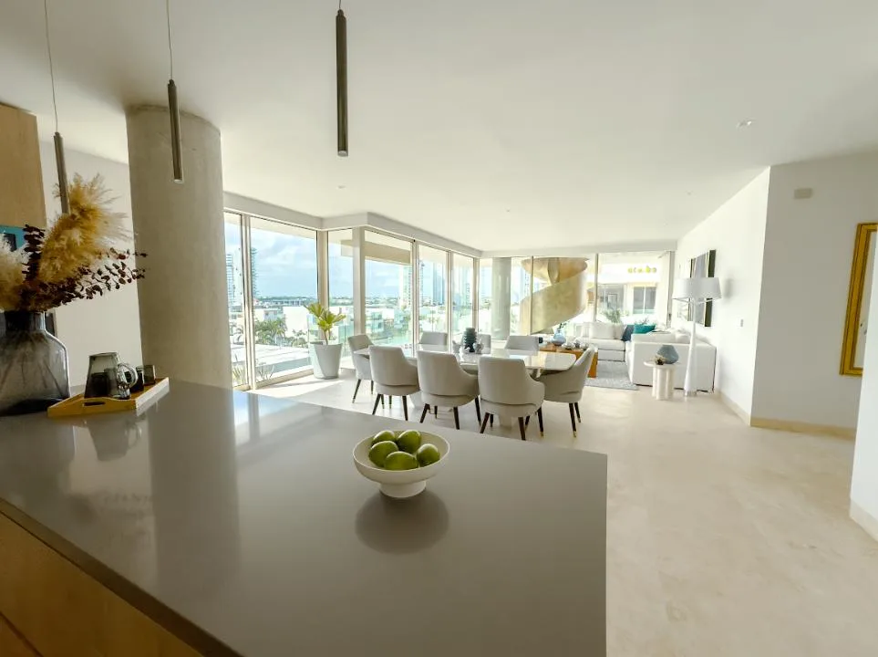 This 440-square-meter luxury penthouse is situated in the exclusive Puerto Cancún community. The residence is designed with premium finishes and a sophisticated layout.