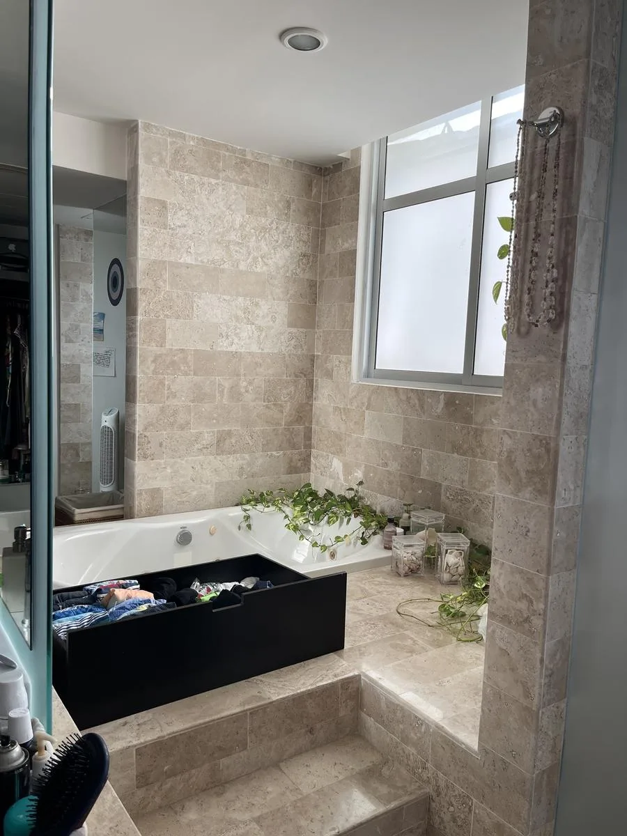 There are three very large bedrooms, each with its own walk-in closet and private bathroom. The property includes three covered parking spaces.