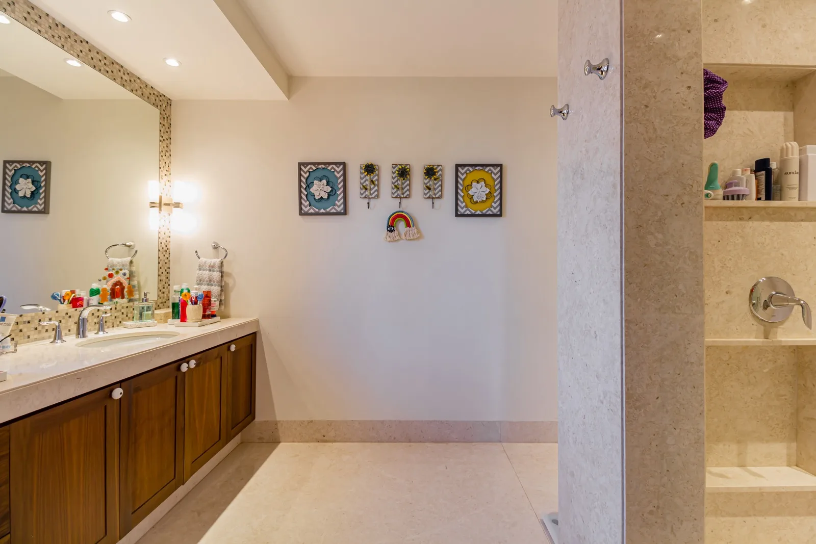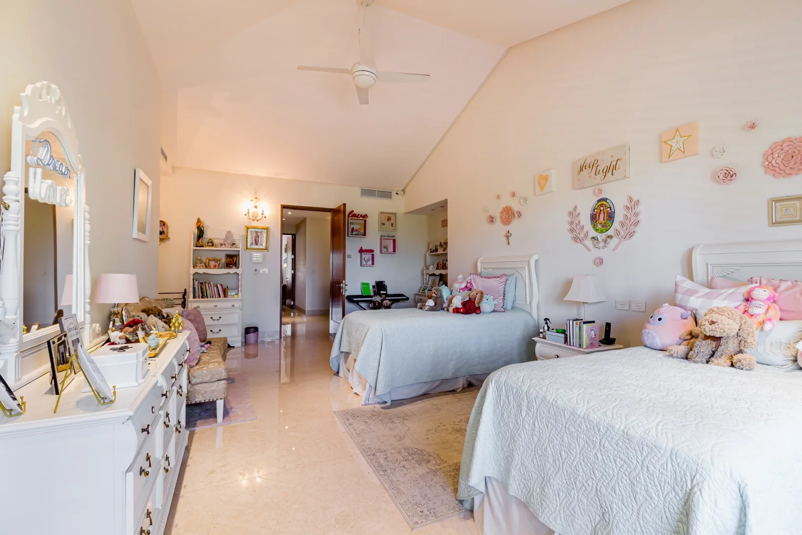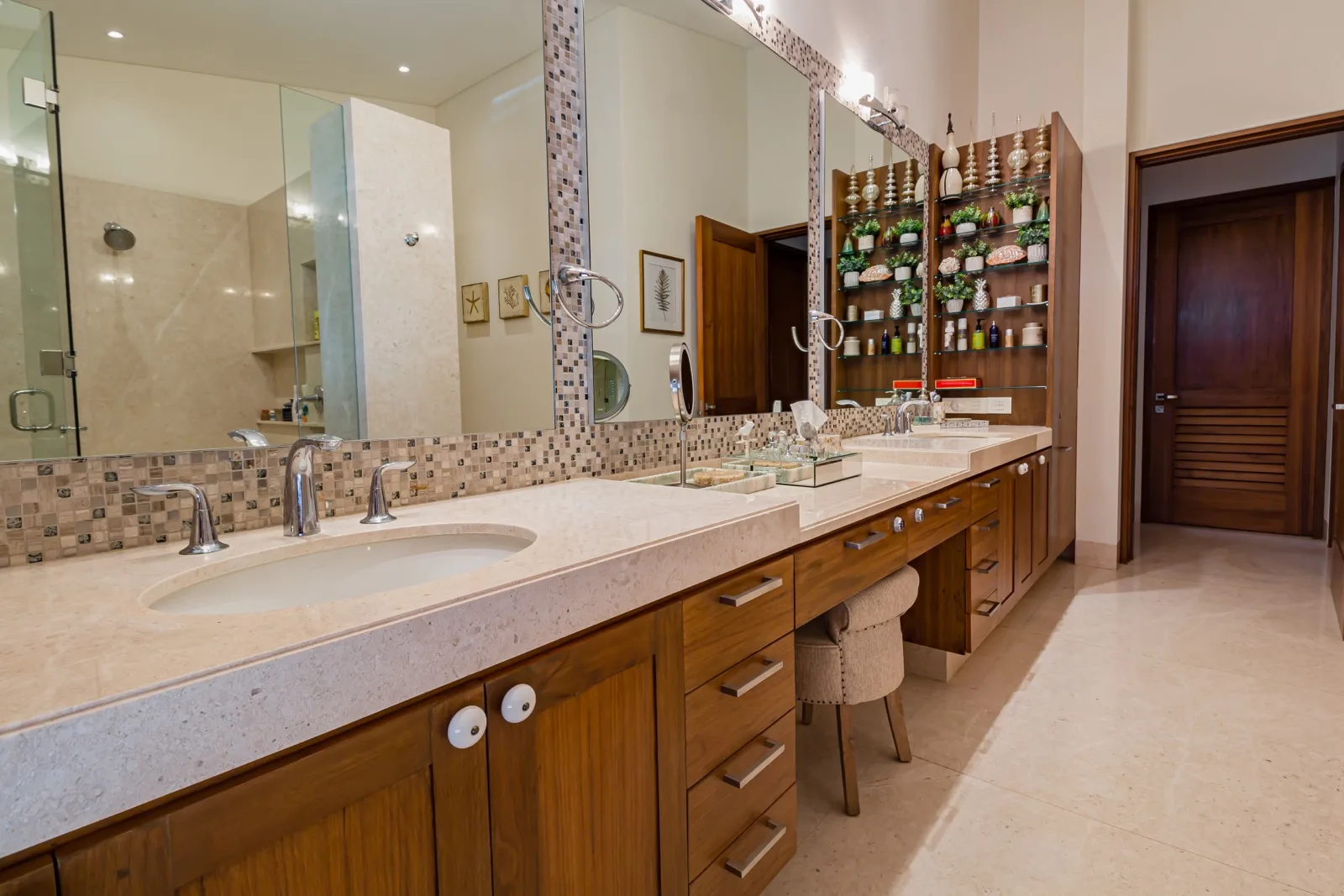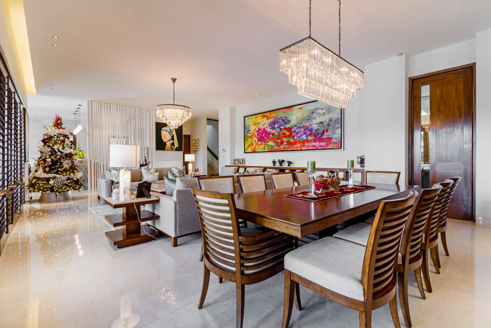 The property includes discreetly integrated hurricane-rated roller shutters, uniform marble flooring, and high-strength Fleetwood aluminum windows. These windows are suited to the local climate due to their resistance to humidity, wind, and salinity, while maximizing natural light and views.