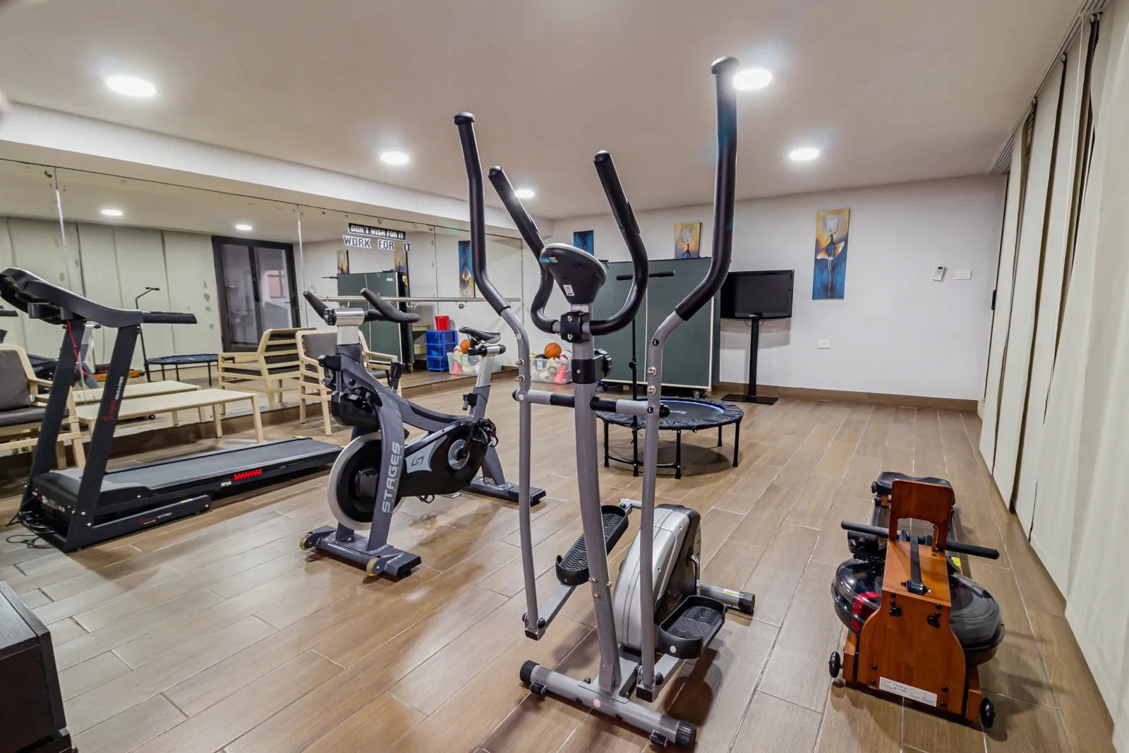 The upper floor offers three additional bedrooms for a total of four, along with a versatile family room that can function as an office or a fifth bedroom. The property includes a covered garage for two cars and underground parking.
