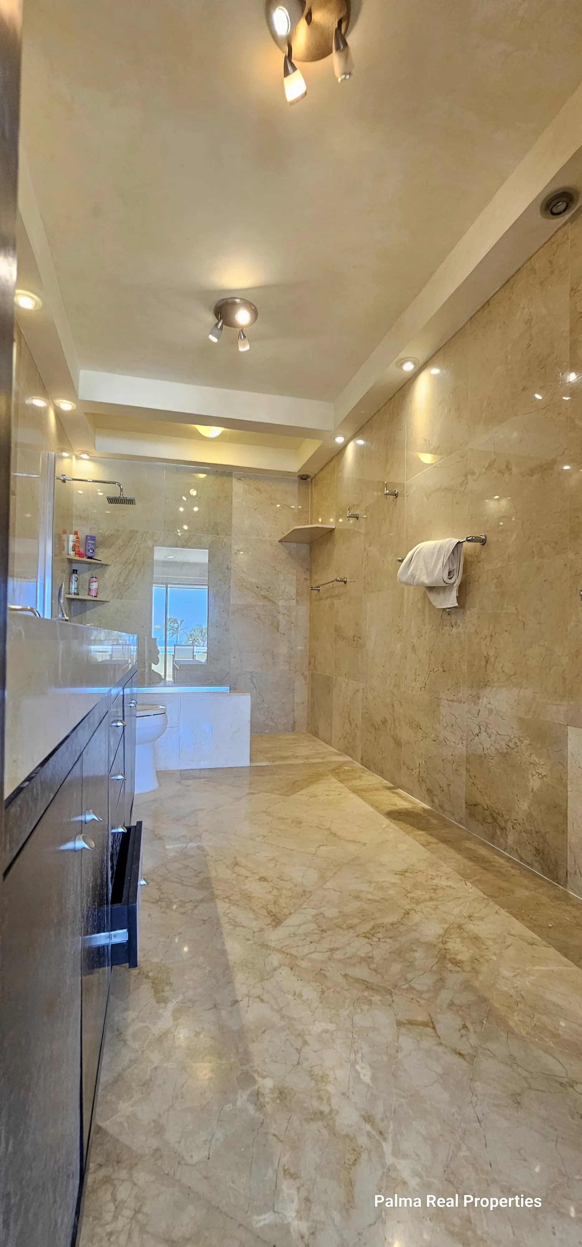 The entire floor of the villa is covered in Italian Carrara marble, introducing a touch of elegance to every corner. The ensuite bathroom in the primary bedroom is fully clad in marble, creating a spa-like atmosphere within the home. All bedrooms have independent air conditioning units, ensuring maximum comfort for every family member or guest.