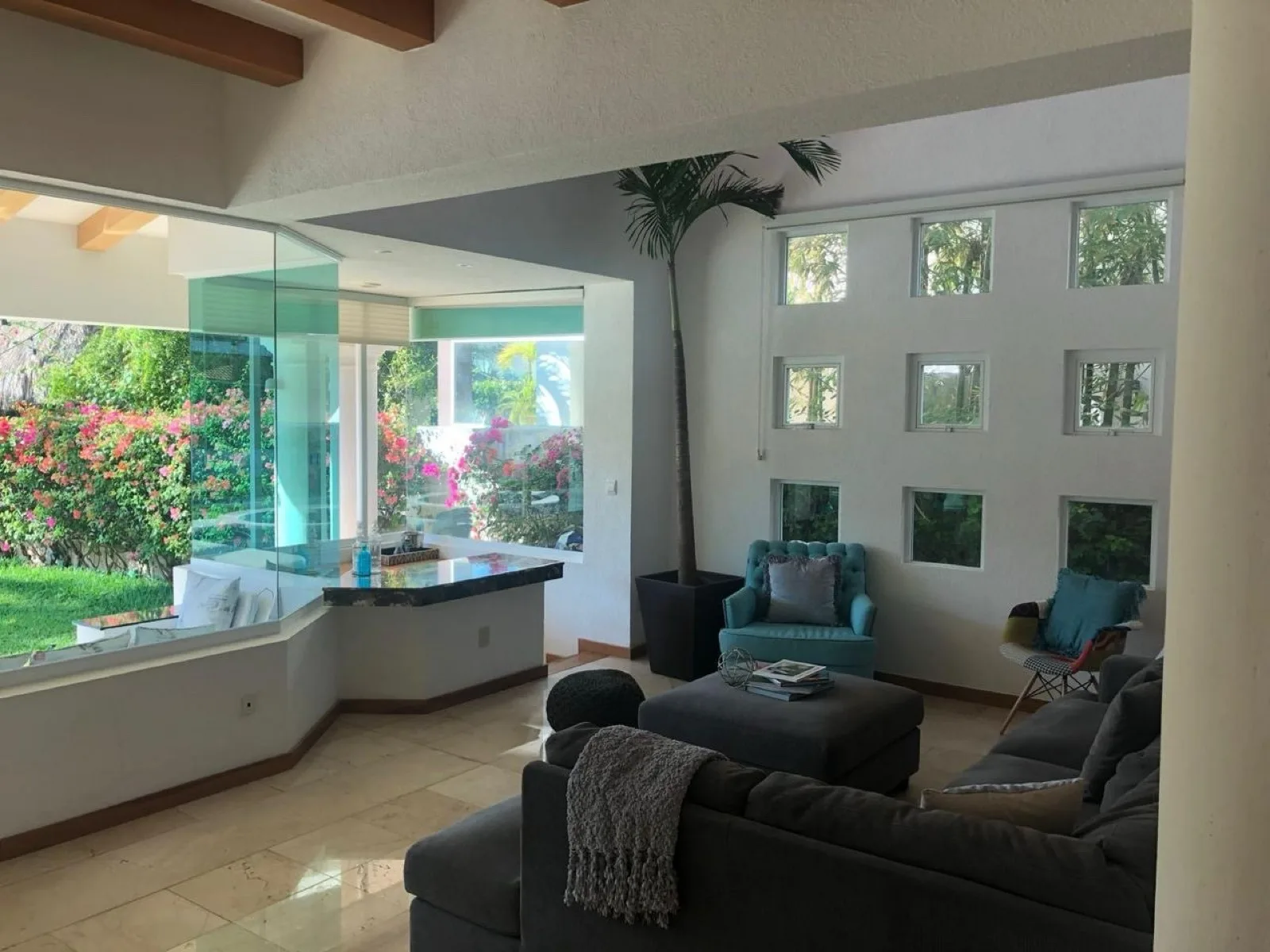 The home features an elegant architectural design, functional layout, and generous spaces filled with natural light. The interior distribution includes three spacious bedrooms, three full bathrooms, and one half-bath for guests. The main living room offers excellent ceiling height and brightness. The home also contains a formal dining room, a fully equipped kitchen with a breakfast bar, a TV room, an ideal bar area for entertainment, a service room, and a laundry area. Every space is designed to provide comfort and privacy, featuring high-quality finishes and a layout that emphasizes spaciousness.