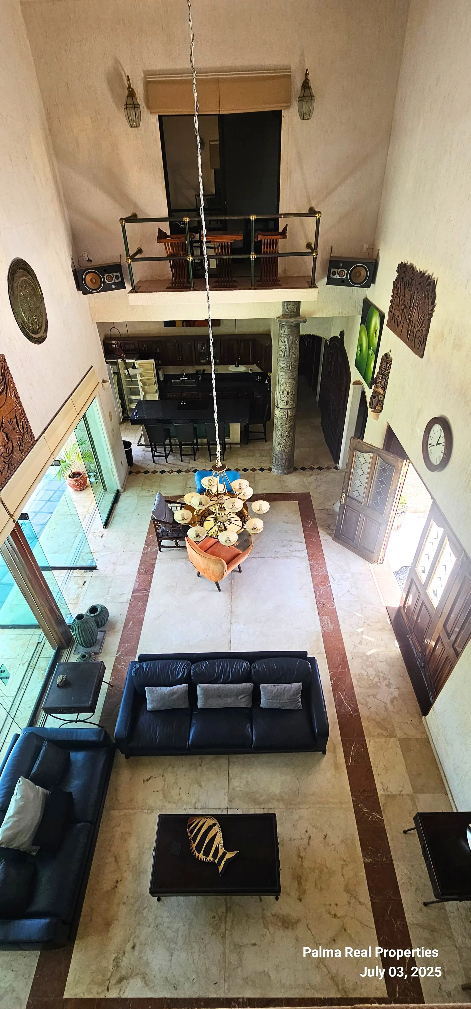 The architecture is distinguished by its solid structure, tile roofs, and large windows. The interior features double-height ceilings, columns hand-carved from volcanic stone with pre-Hispanic motifs, Catalan vaults, stained glass, noble woods, and details that reflect a deep Mexican inspiration. Each space was designed with attention to detail, offering authentic luxury and modern functionality.