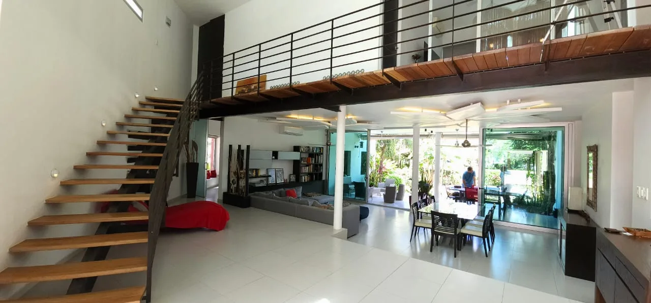 From the property, enjoy a stunning view of the ocean, which is less than five minutes away. The strategic location allows for enjoying the sea breeze and proximity to various exclusive services.