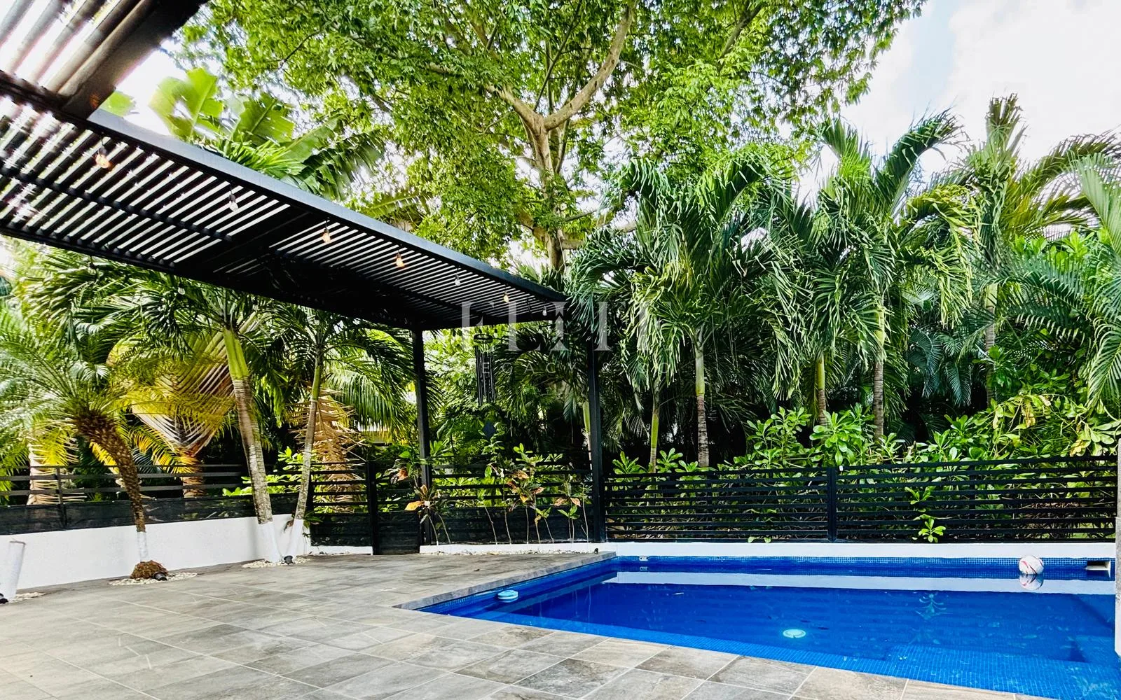 The property is equipped with inverter air conditioning on the ground floor and in all bedrooms, along with ceiling fans, mosquito screens on all windows, and blinds in all bedrooms. The covered terrace has space for a living area. The home also features a water softener and a cistern. The construction year of the house is 2022.