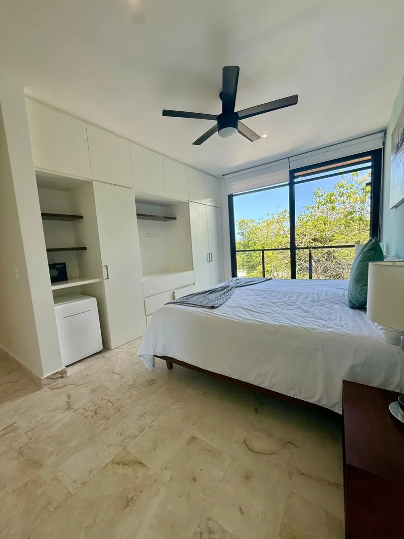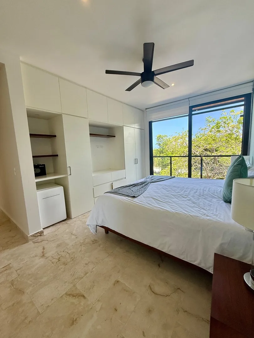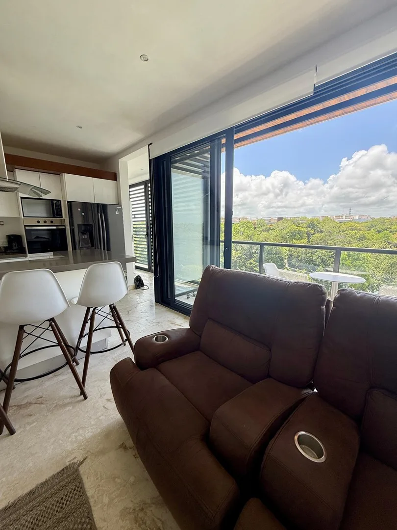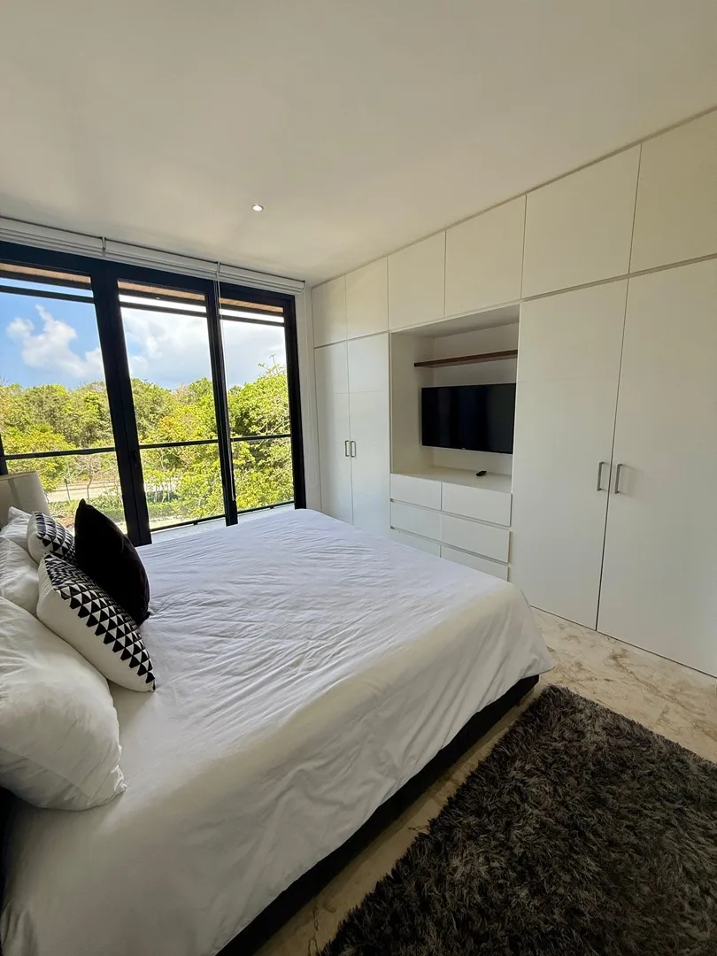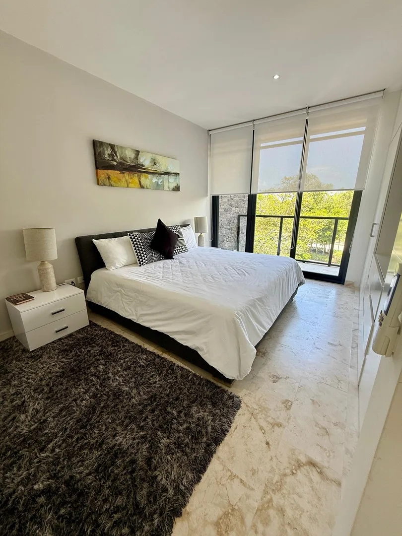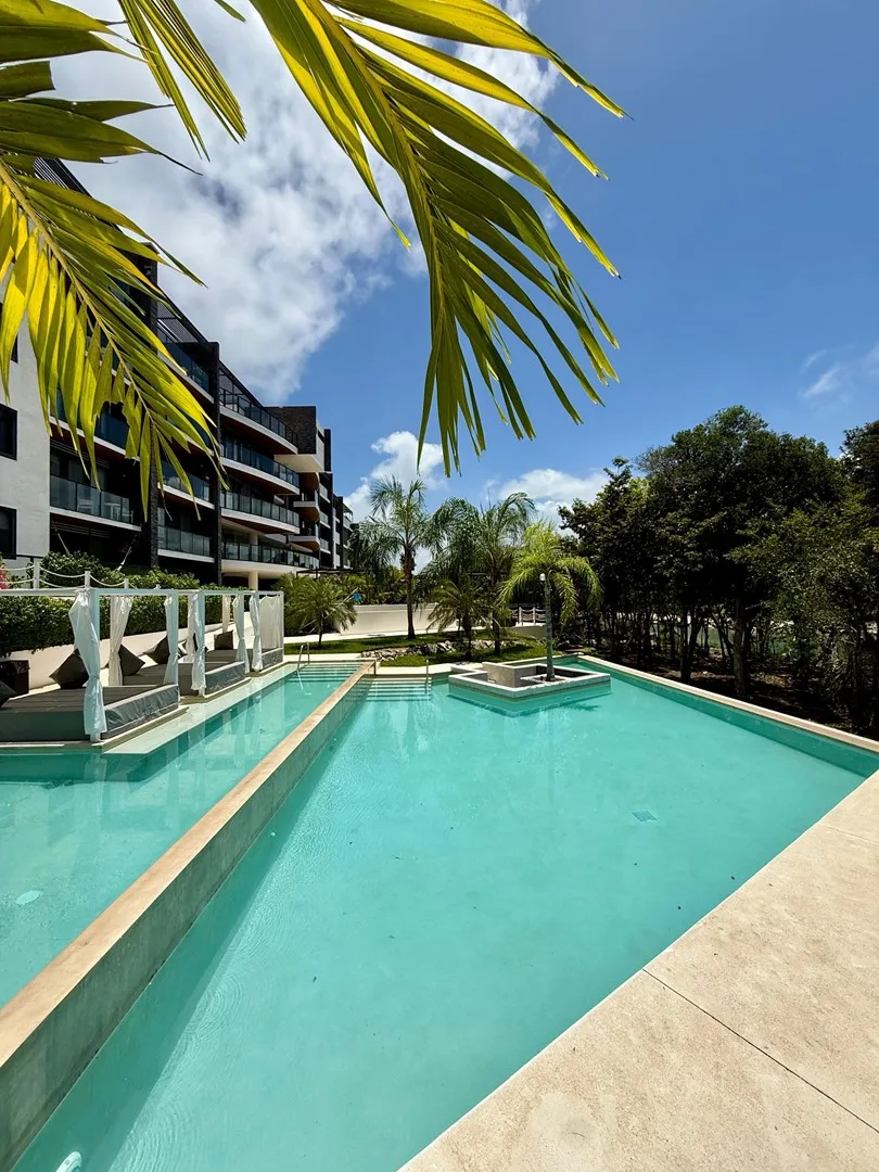 This 3-bedroom residence offers a flexible layout and is situated within a gated community. The unit provides uninterrupted views of the jungle, a lake, and a PGA-certified golf course, as well as ocean panoramas from the shared rooftop.