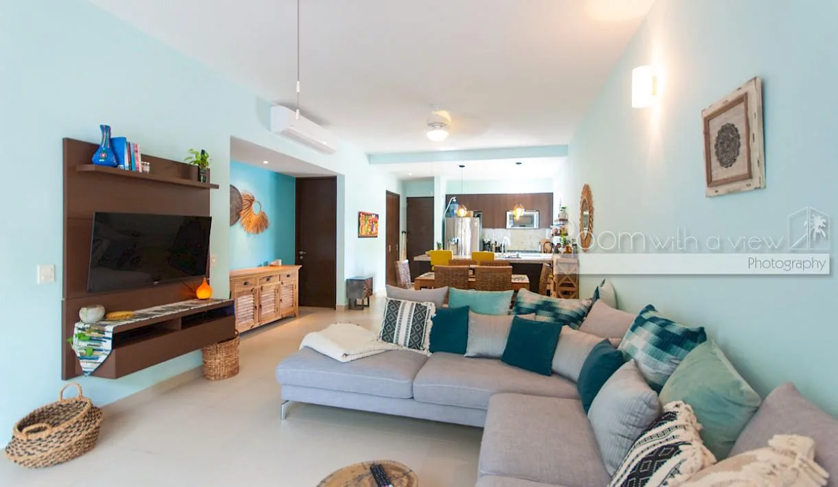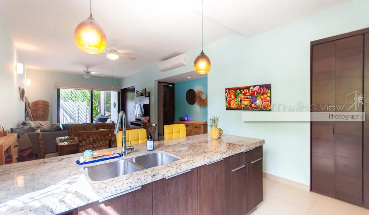This condominium is located within a gated community in the pristine area of Akumal. The community is situated within a large golf resort, surrounded by a world-class golf course, and is just minutes from the beaches of the Riviera Maya.