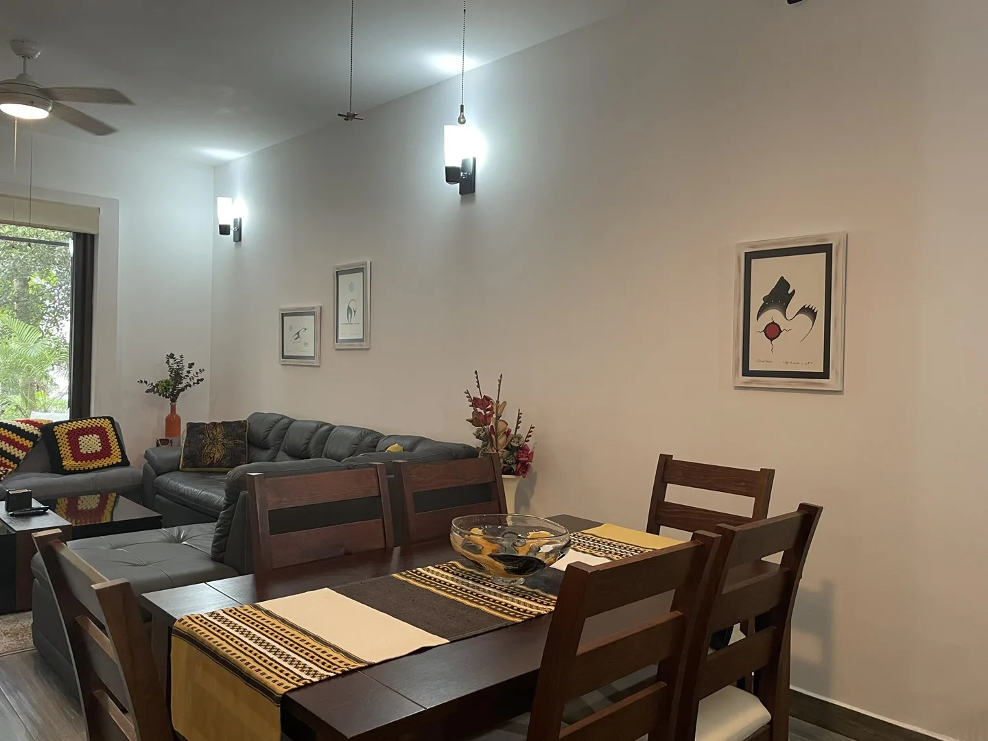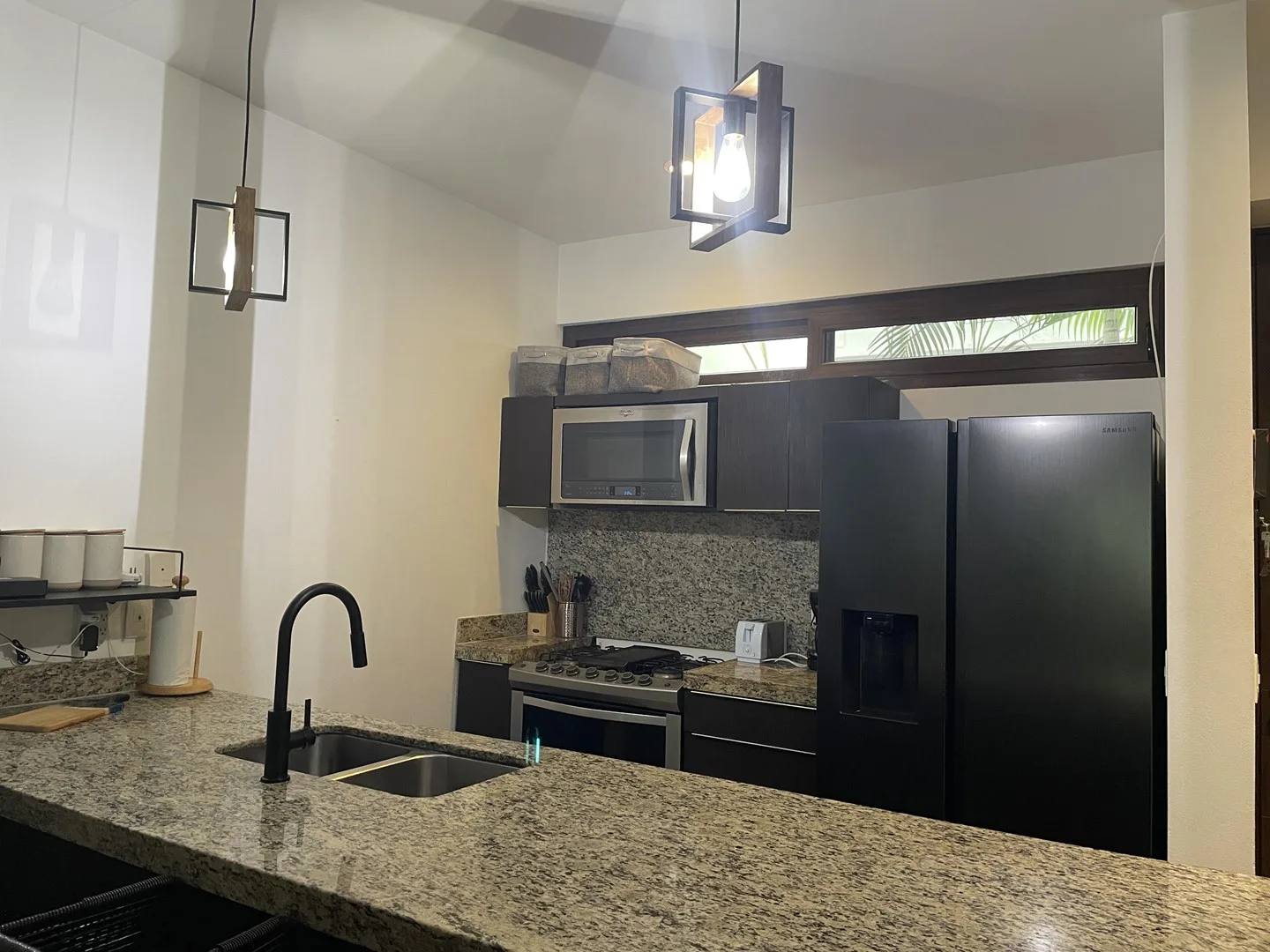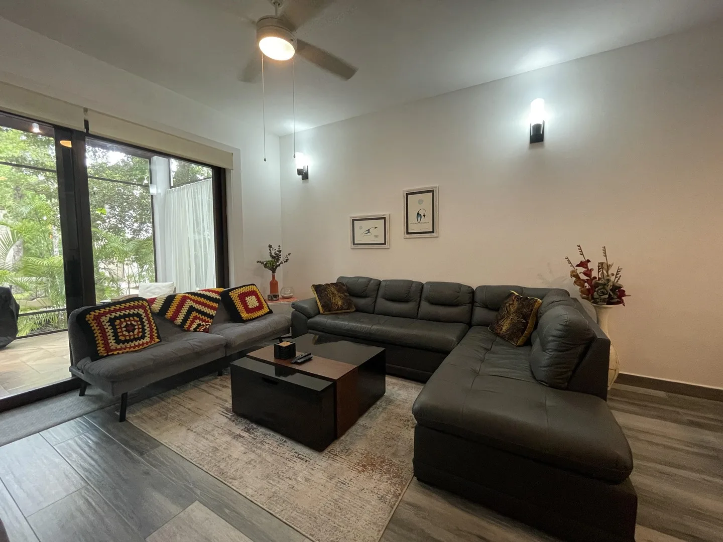 The living space extends to a covered terrace that opens to lush greenery, creating an ideal area for relaxation, dining, or enjoying morning coffee surrounded by nature. The property has never been rented and is in pristine condition throughout.