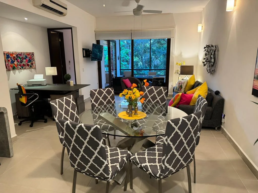 The community provides access to two infinity pools located just a few steps away. The broader grounds feature a wellness center with spa services, a fully equipped gym, a yoga studio and conference center, a Temazcal, and a bistro.