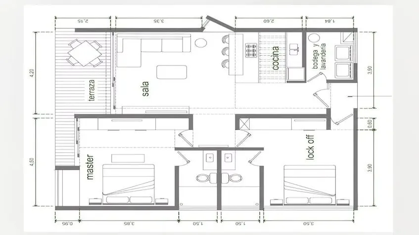 Amenities include a swimming pool, a covered BBQ area, lounge and living rooms, a yoga area, and a gym with a bathroom and dressing room. The property also features a coworking space, a reception area, and an elevator. Residents have access to the Kay Beach Club, a spa and temazcal within the Country Club, and various sports courts. The development offers controlled access and 24/7 security.
