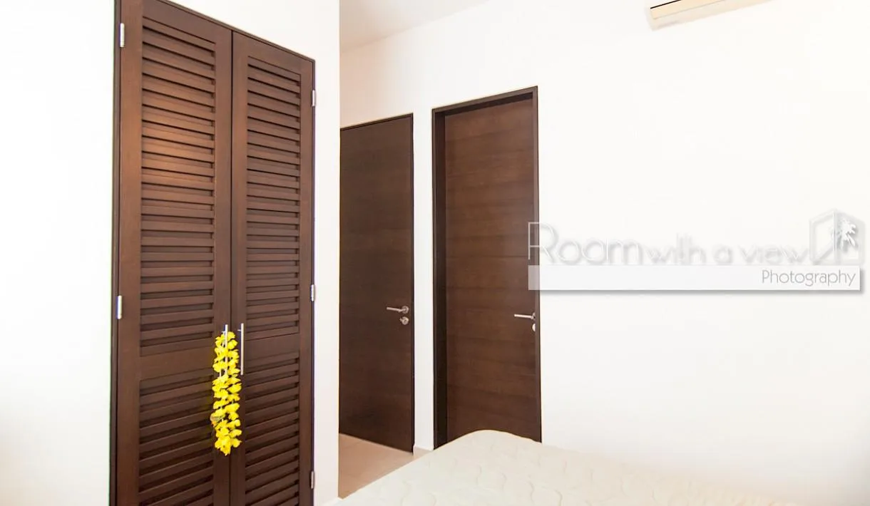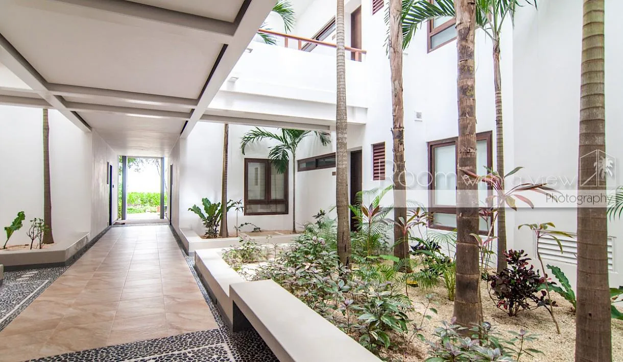 The spacious 2-bedroom penthouse has an open design with ample natural light. It includes a laundry room and a private rooftop terrace with a sunbed area, a Jacuzzi, and views of the jungle and resort. The penthouse is fully furnished and equipped.