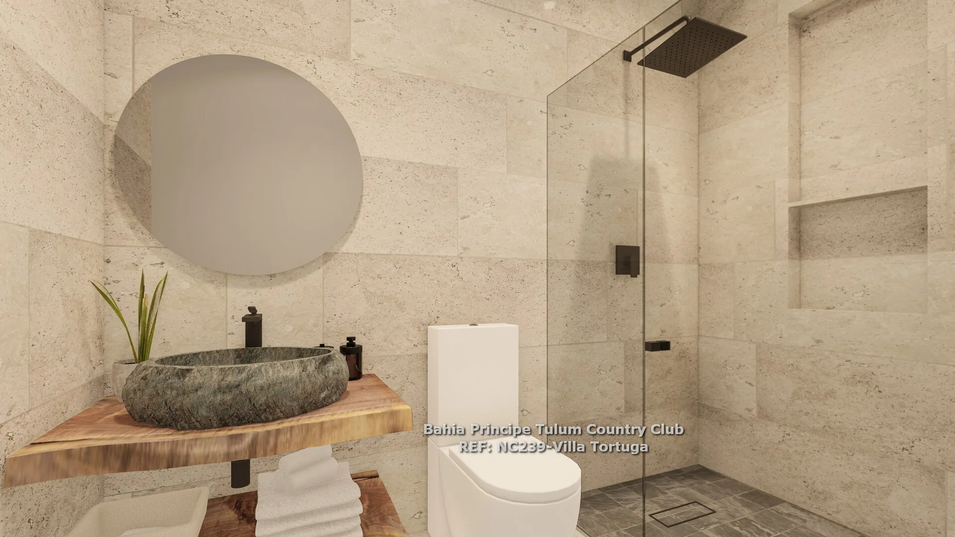 The villa is situated in the heart of the Riviera Maya, near beaches and archaeological sites. The community provides access to the PGA Riviera Maya golf course, restaurants, and clubhouses.