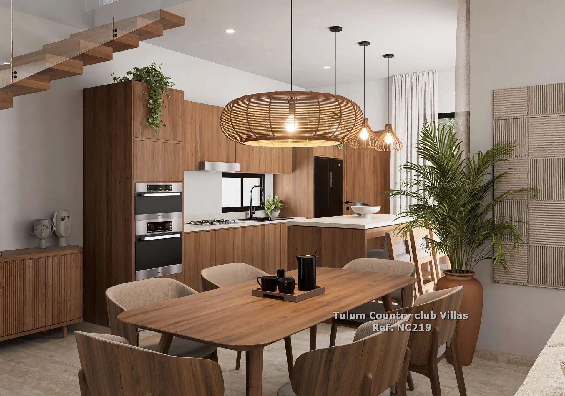The residence is situated within the prestigious Tulum Country Club, an exclusive community surrounded by the stunning natural beauty of the Riviera Maya. The community is adjacent to a PGA golf course, which includes a professional 18-hole course and an executive 9-hole course integrated with the Mayan jungle.