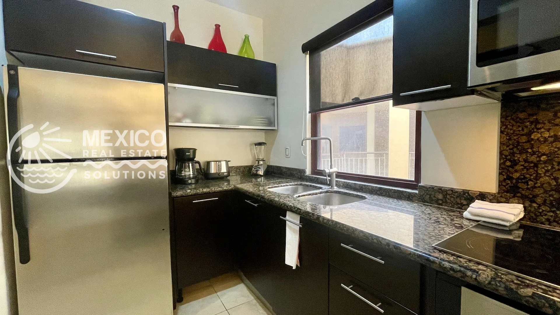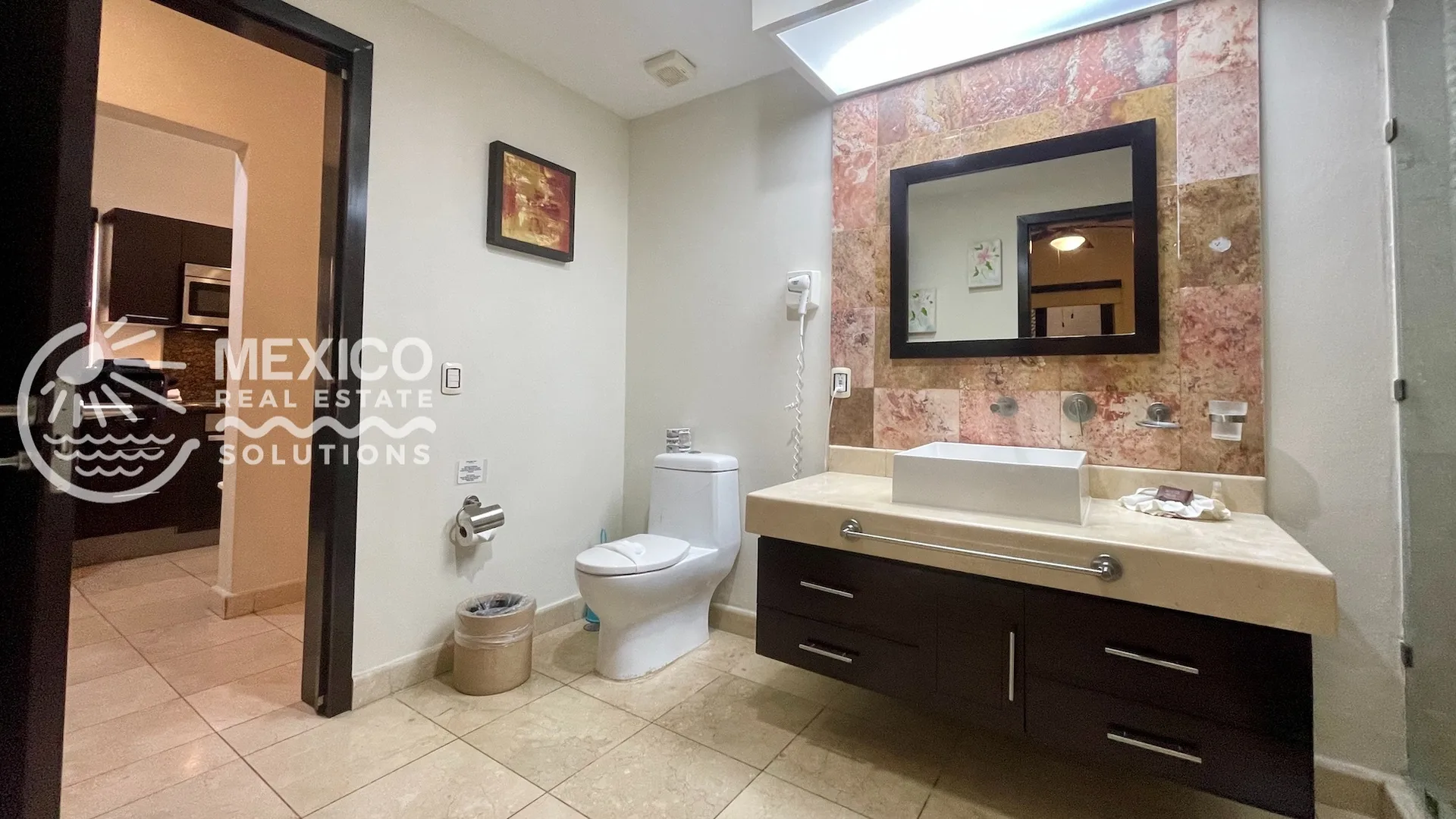 This fully furnished 2-bedroom, 2-bathroom condo is situated on the third floor of a beachfront building in Playa del Carmen. It is an end unit that provides bright interiors, consistent breezes, and a private terrace with pool and sea views. The property is steps from the white sand beach and Fifth Avenue.