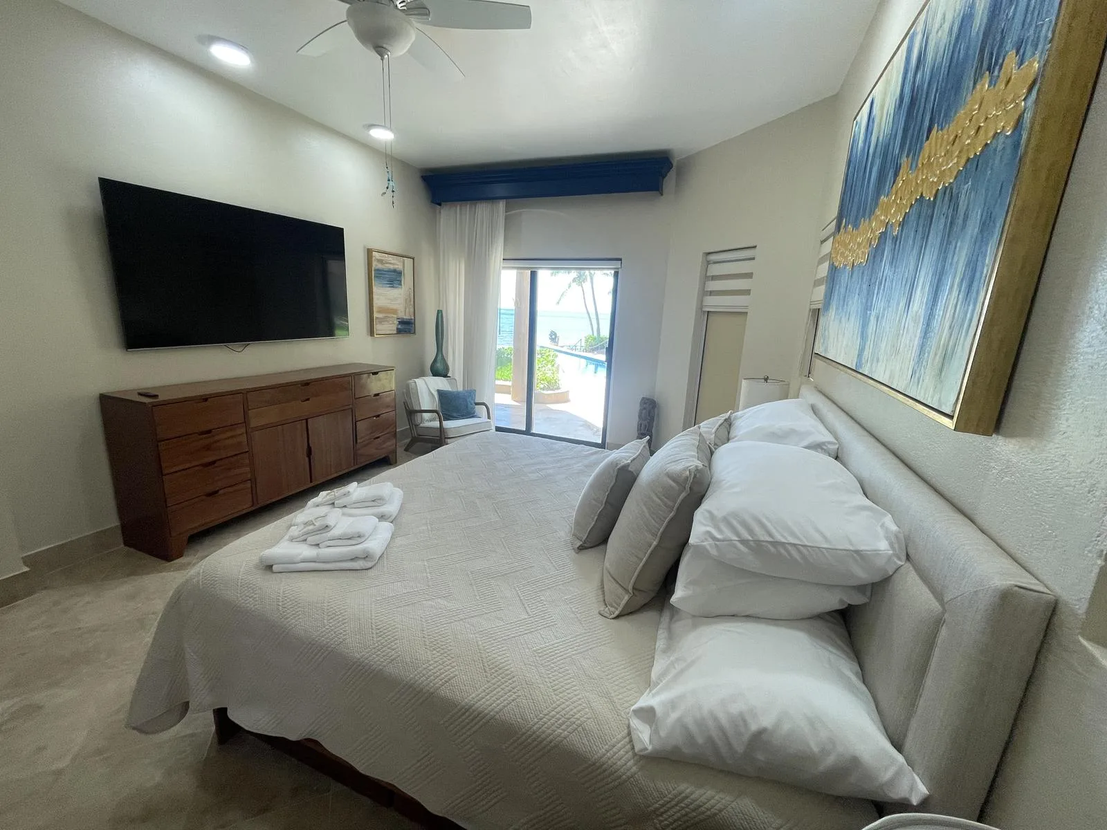 This elegant apartment features an open-concept layout designed to maximize space, natural light, and ocean views from the living room and primary bedroom. The primary bedroom includes an ensuite bathroom and a walk-in closet, creating an ideal retreat for enjoying beachfront living in one of the most desirable destinations on the Riviera Maya.