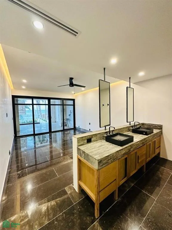 This ground-floor residence offers 300 square meters of living space. The layout includes three bedrooms, each with a private ensuite bathroom, for a total of 3. 5 bathrooms. The unit features walk-out beach access and is framed by panoramic sunrise and sunset ocean views.