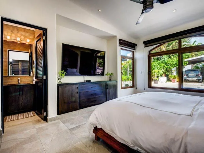 The house is situated just steps from Playa del Carmen's famous Fifth Avenue. The location offers a perfect balance, providing a tranquil environment for coastal living while being within walking distance of restaurants, boutiques, and shops. The ferry to Cozumel is approximately a seven-minute walk away.