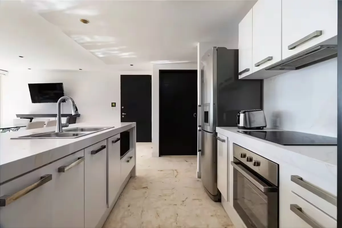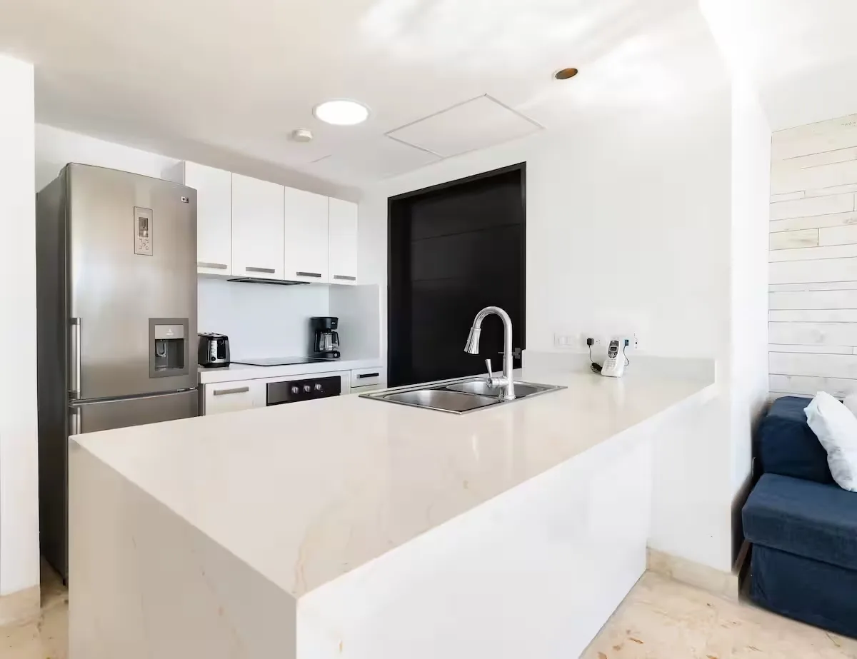 Welcome to Elements, a prestigious 96-unit building located on the white sand beaches of Playa del Carmen. This completely renovated, second-floor ocean-view unit spans 138. 05 square meters and offers breathtaking views of the sea. The owners have transformed the space with stunning Calacatta gold quartz kitchen countertops, brand new Italian oven and stove, custom lighting fixtures, and complete custom woodwork throughout.