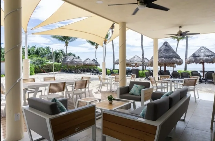 The building offers well-known amenities including a private beach club with a snack bar, a two-story gym, a large resort-style swimming pool, a business center, and 24/7 security. The property is situated in the desirable Zazil Ha neighborhood, just a few blocks from the famous 5th Avenue.