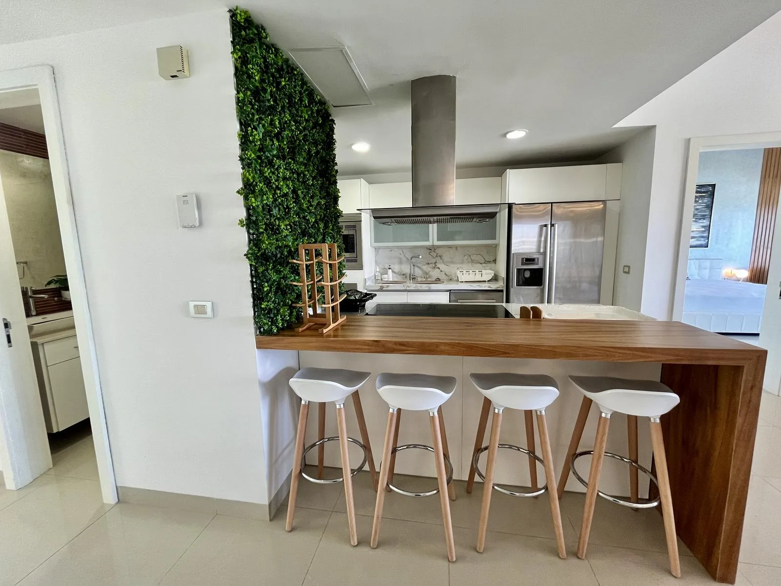 This elegant, fully furnished and equipped three-bedroom apartment offers generous space, an integrated kitchen, and a private terrace overlooking greenery.