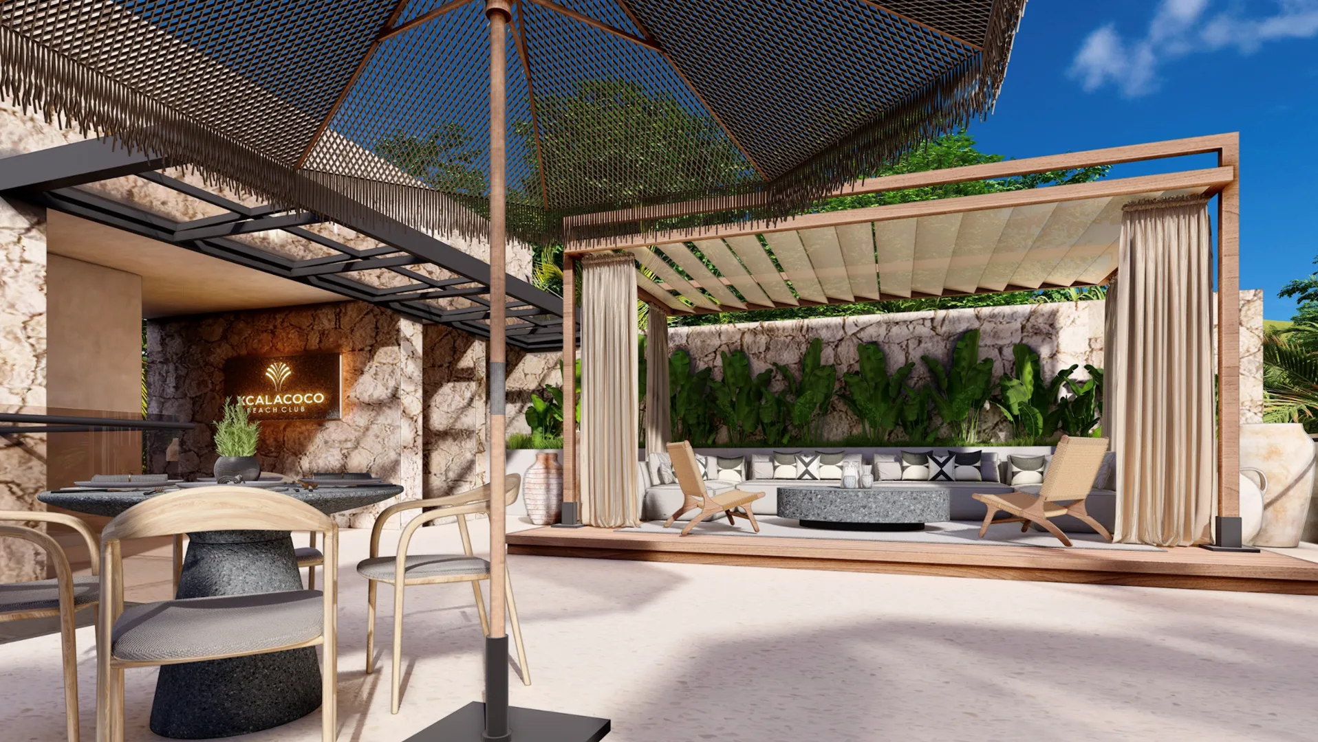 Residents have access to a private beach club directly on the Caribbean Sea. The spaces are suitable for relaxation, private events, or recreational activities.