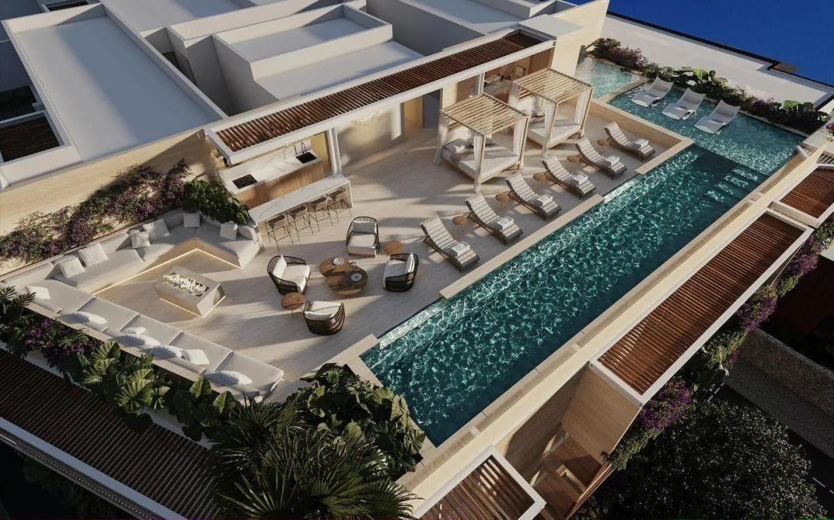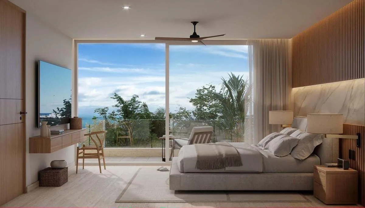 This two-bedroom apartment is located just a few steps from the beach, offering panoramic views and a privileged location in the heart of Playa del Carmen.