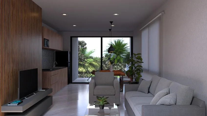 A new residential project offers one and two-bedroom apartments for sale in Playa del Carmen.