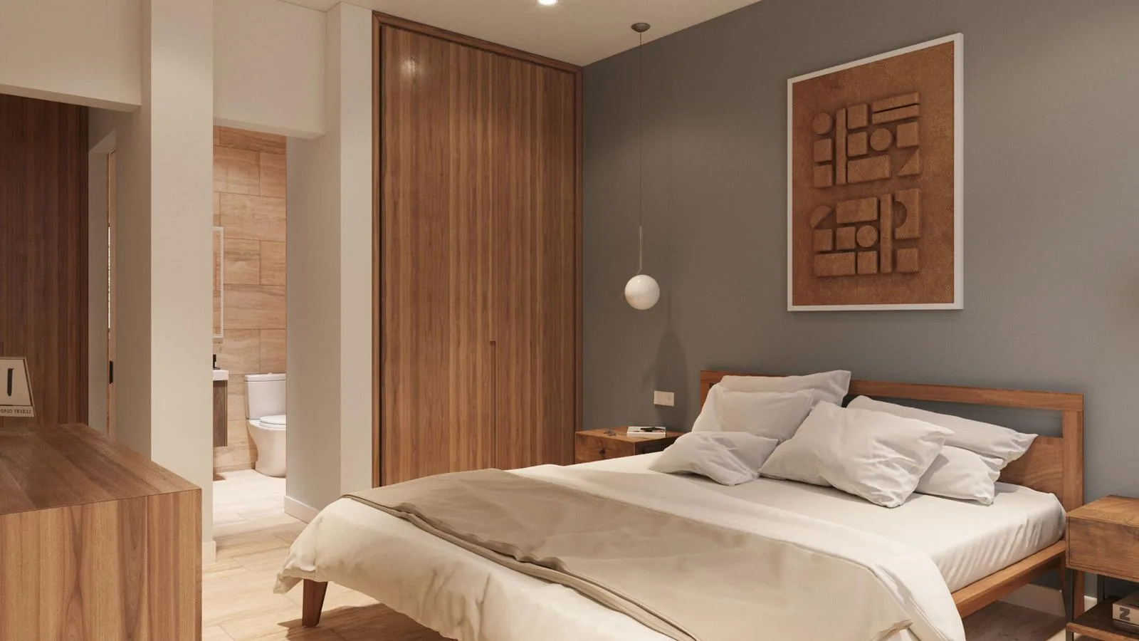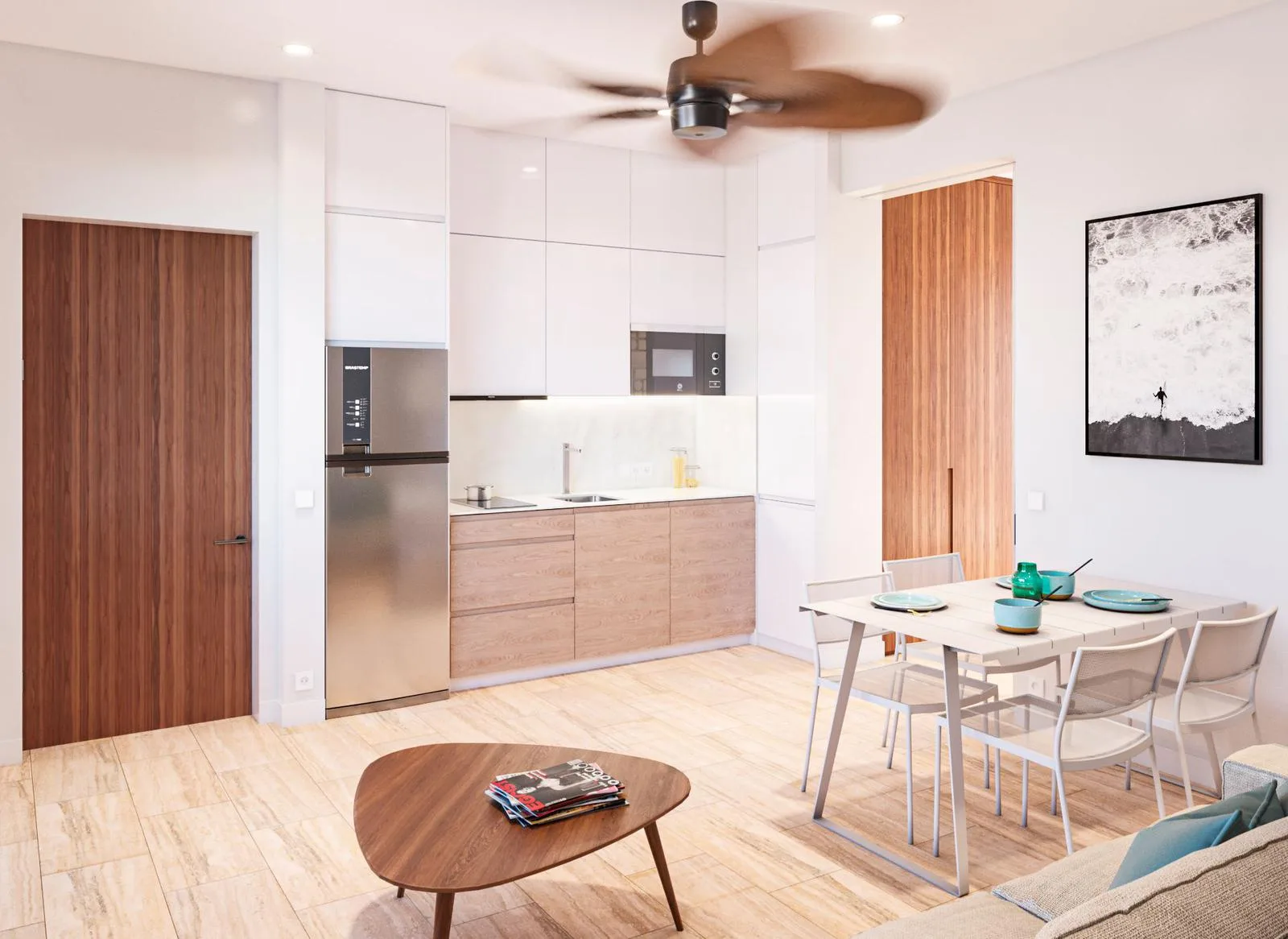 This building comprises 46 one-bedroom units, with only eight apartments per floor, ensuring a private and calm environment.