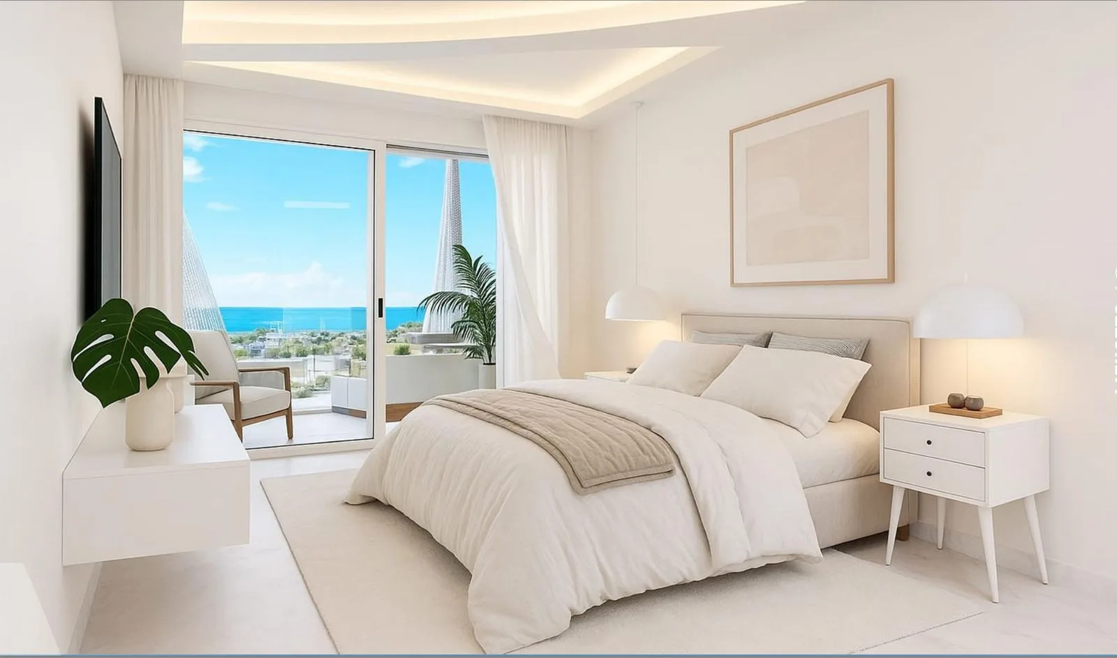 Building amenities include a rooftop with panoramic ocean views, lounge areas, sunbeds, a social sport bar, and an air-conditioned gym. The rooftop is designed for social gatherings and offers extensive views.