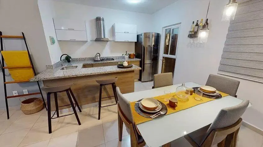 The Lantana model provides 66 square meters of habitable construction within an average construction area of 70. 87 square meters. It includes a dining room, kitchen, 2 bedrooms and 1 bedroom, 1 full bathroom, and 1 parking space. The building has 3 levels with 2 departments per level.
