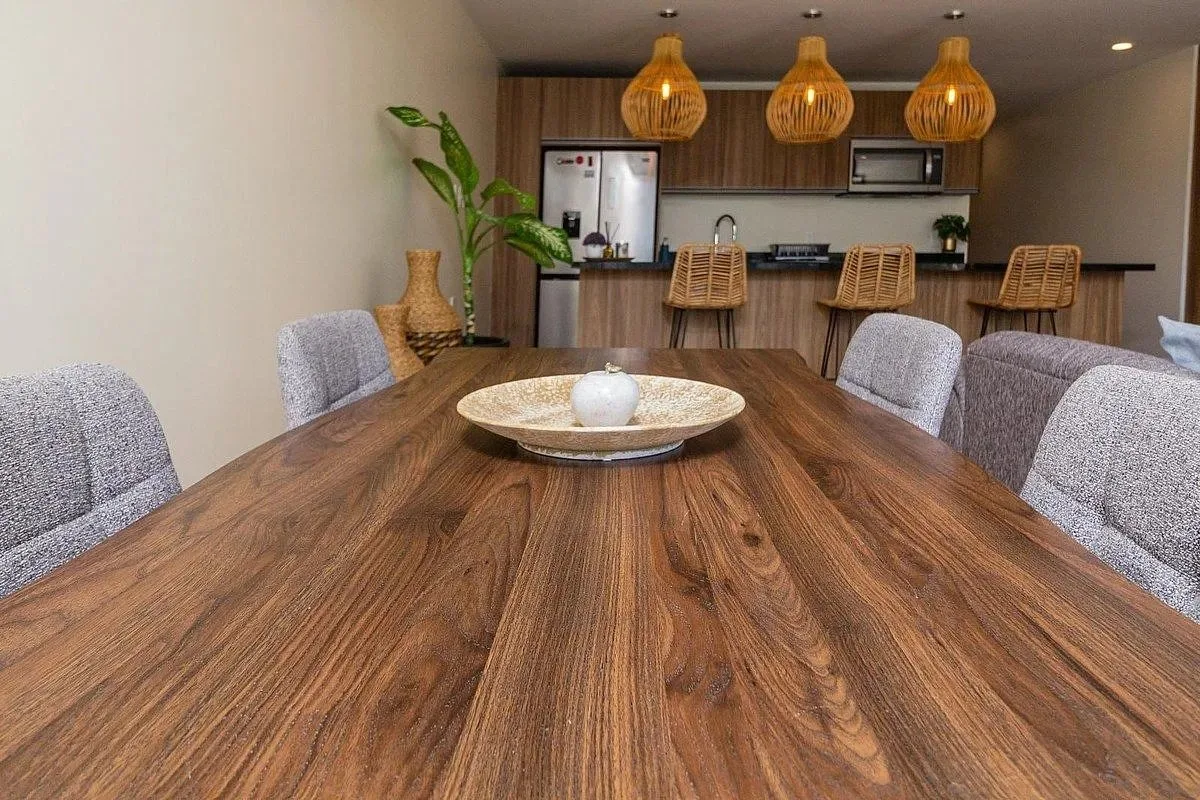 This 142. 55 square meter apartment in Playacar features two bedrooms and two bathrooms. The layout includes a kitchen with granite countertops, a living room, a dining area, and a very spacious terrace with a beautiful view. The property is delivered ready to occupy.