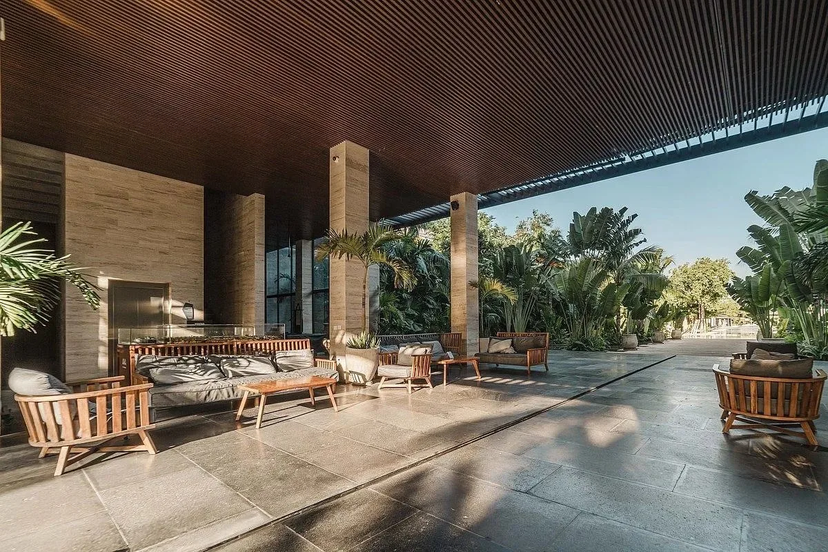 The building offers a comprehensive selection of amenities including a rooftop infinity pool, a linear pool over 100 meters long, jacuzzis, a kids club, cabanas and lounges, a bar, a yoga place, a zen garden, a gym, a paddle court, a meeting room, a billiards area, a beach club, 24/7 security, and an elevator.