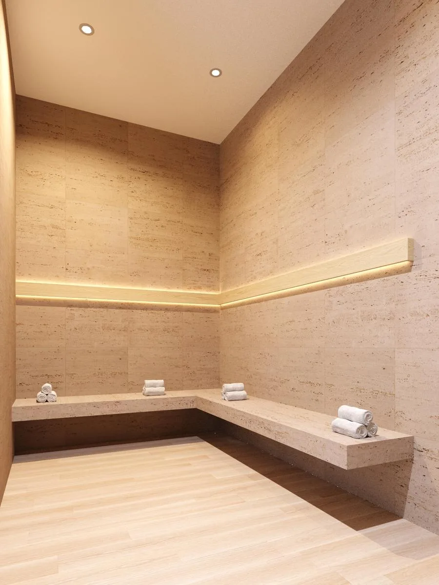 The building offers a pool, a sun deck, and a 24-hour concierge service. Amenities include a grill, a sauna and spa, digital locks, a gym, and an elevator.