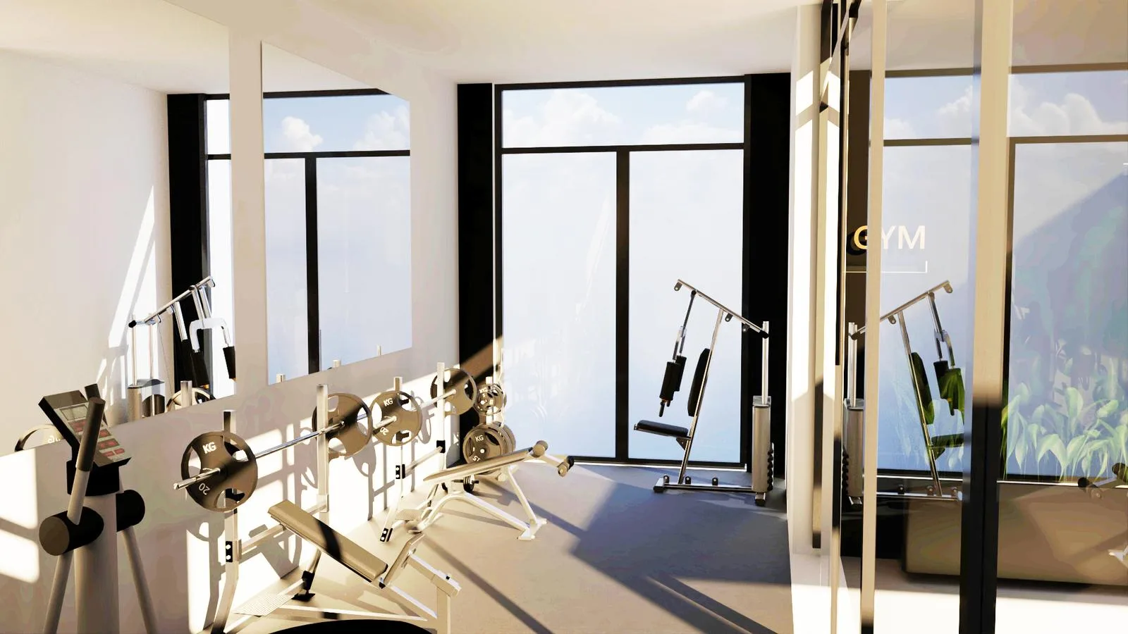 The building amenities include a rooftop swimming pool, a barbecue area, a sauna, a gym, a coworking space, a sunbathing terrace, a bar, a jacuzzi, an elevator, and parking.