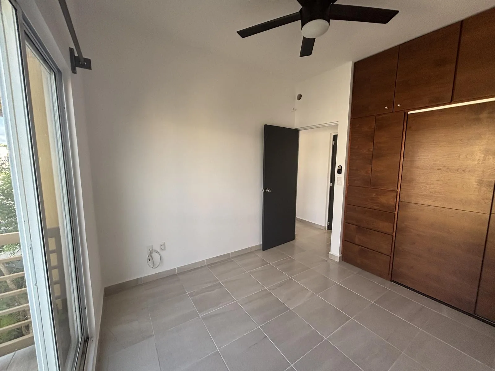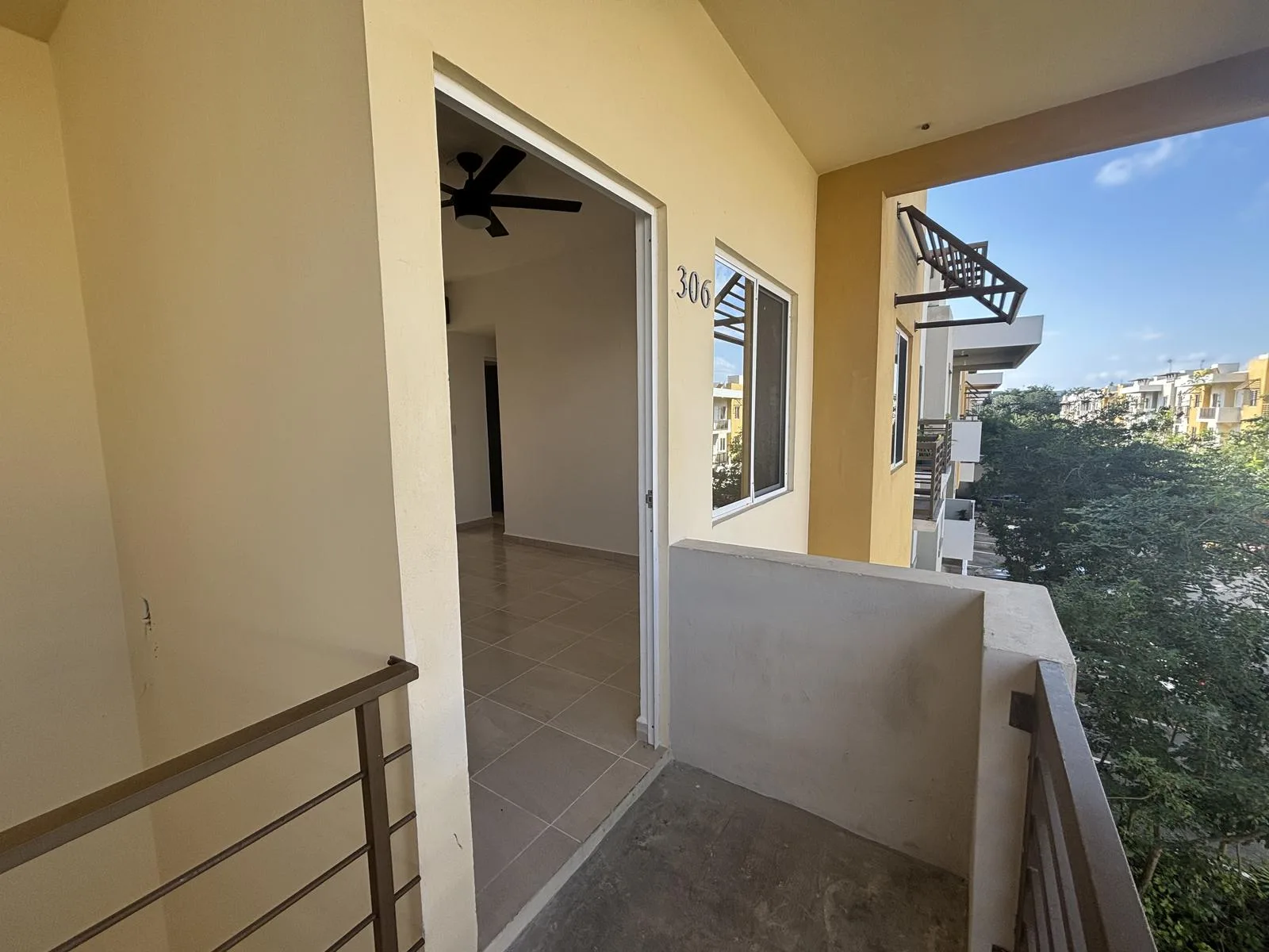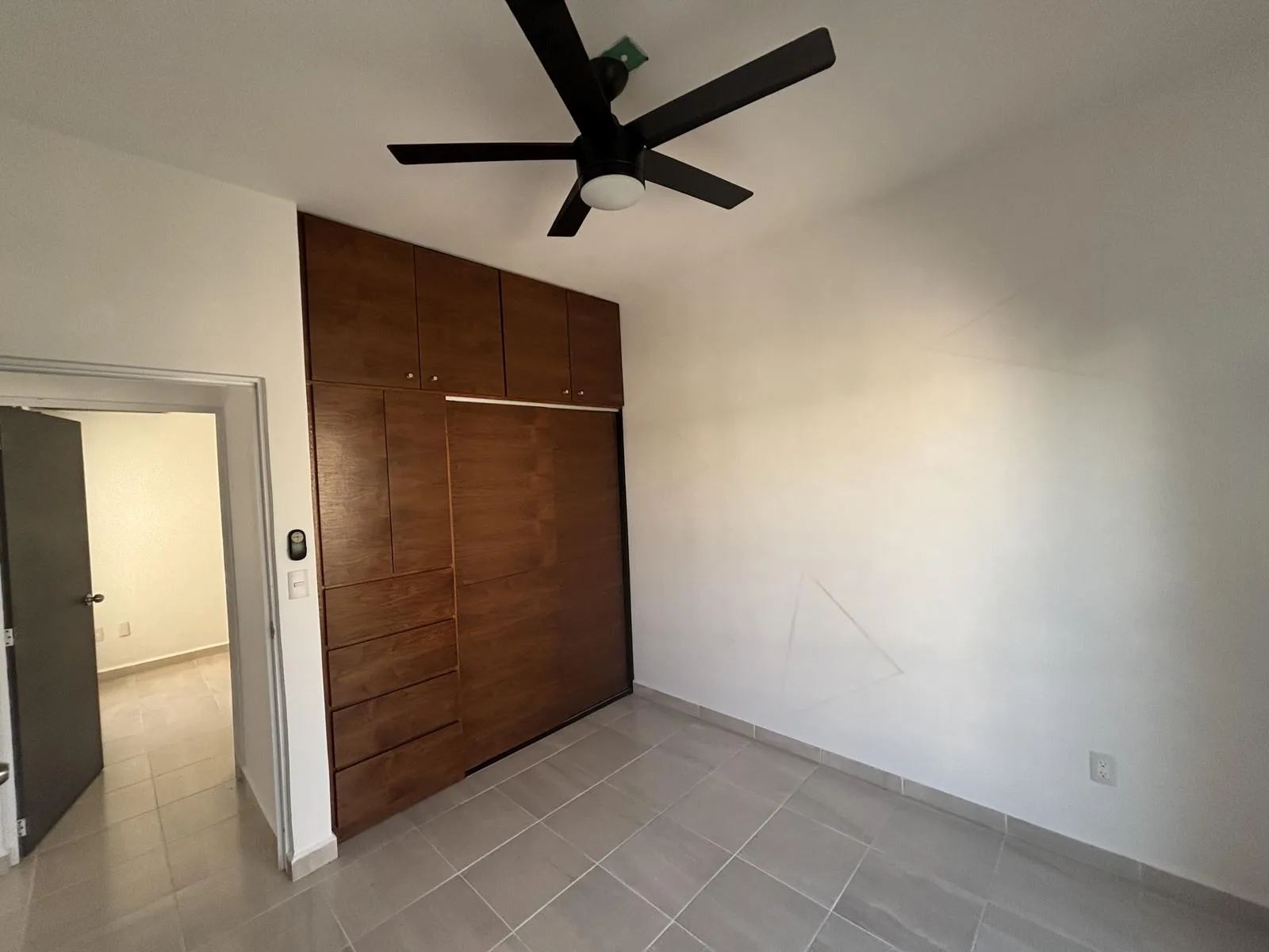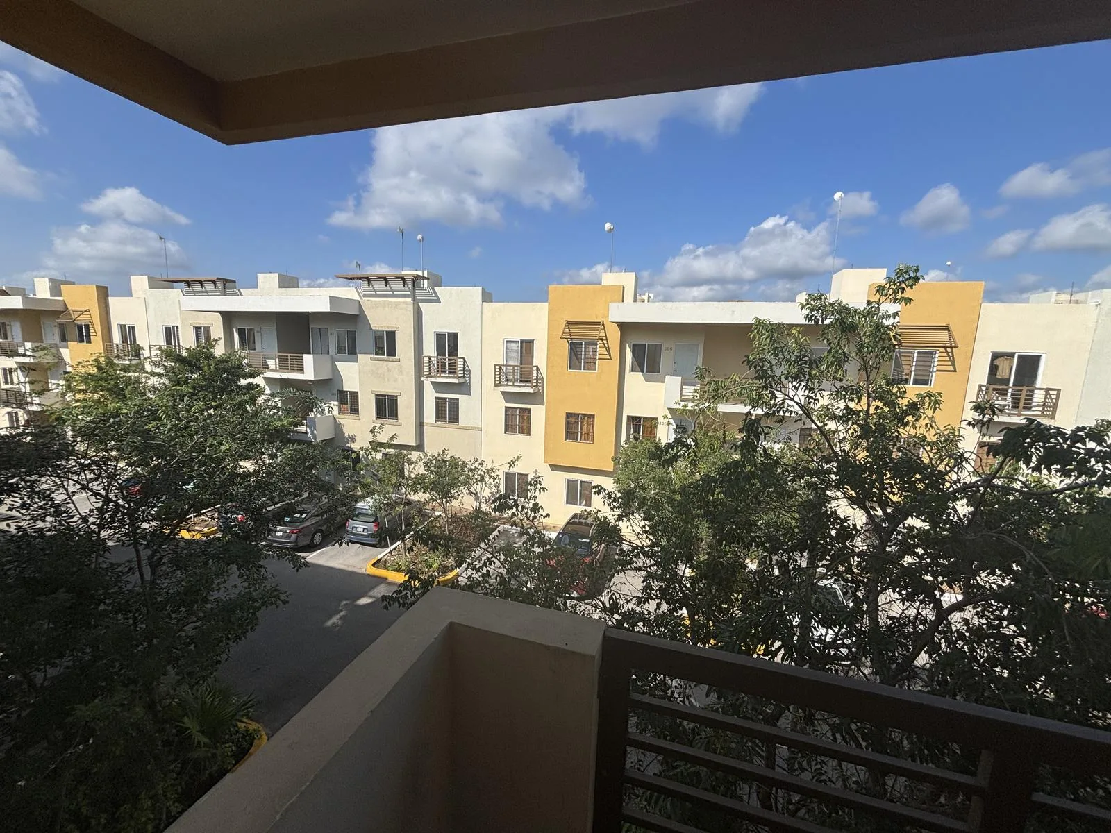 This apartment is located in Jardines de Mayakoba, Playa del Carmen. It features three bedrooms and one full bathroom. All bedrooms include closets and ceiling fans. There are two air conditioning units in the bedrooms and one in the living room.