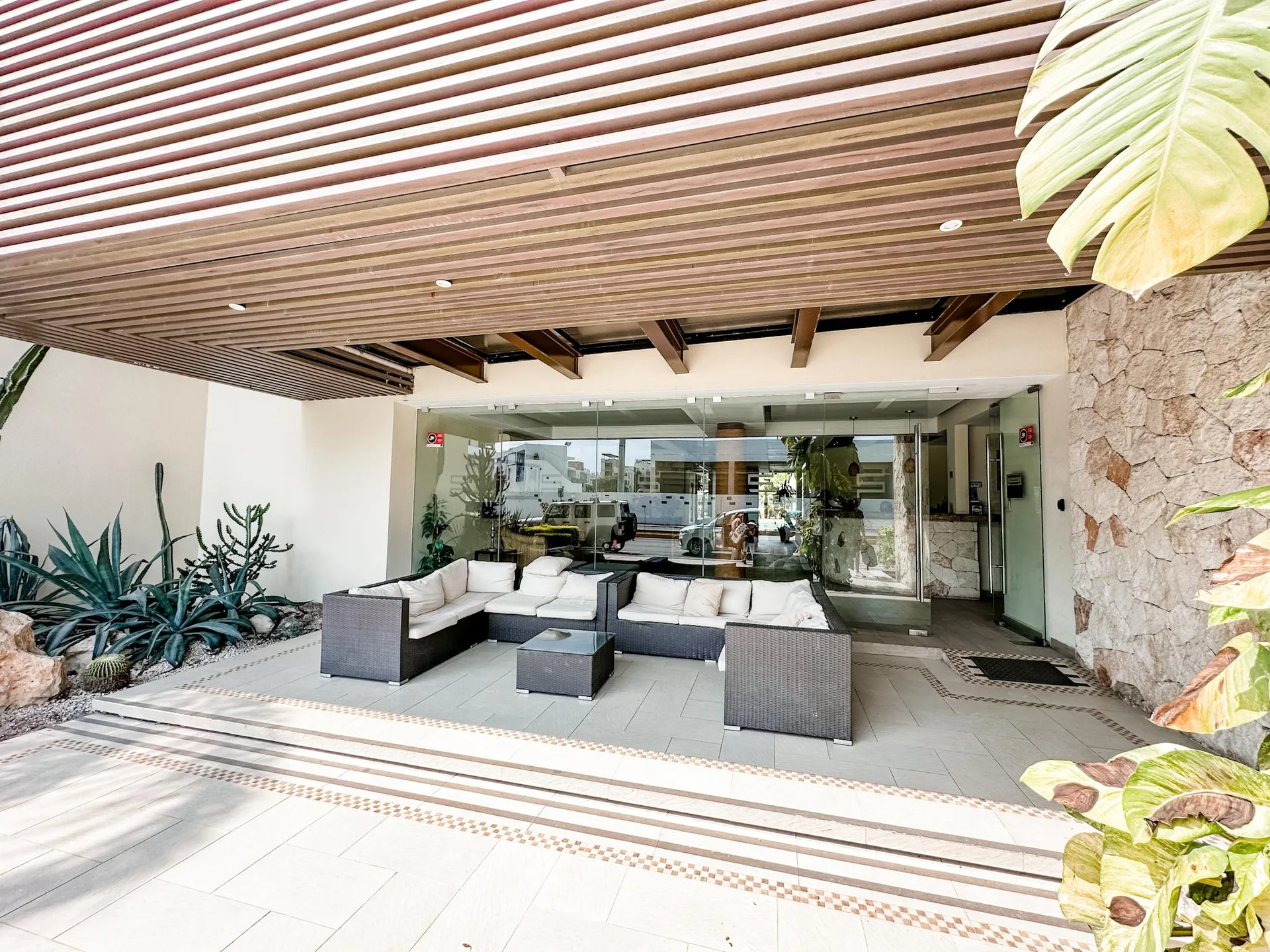 This spectacular ground-floor condominium in Playa del Carmen is fully renovated and features a large private terrace. It offers a sophisticated design and a direct connection to the surrounding tropical nature.