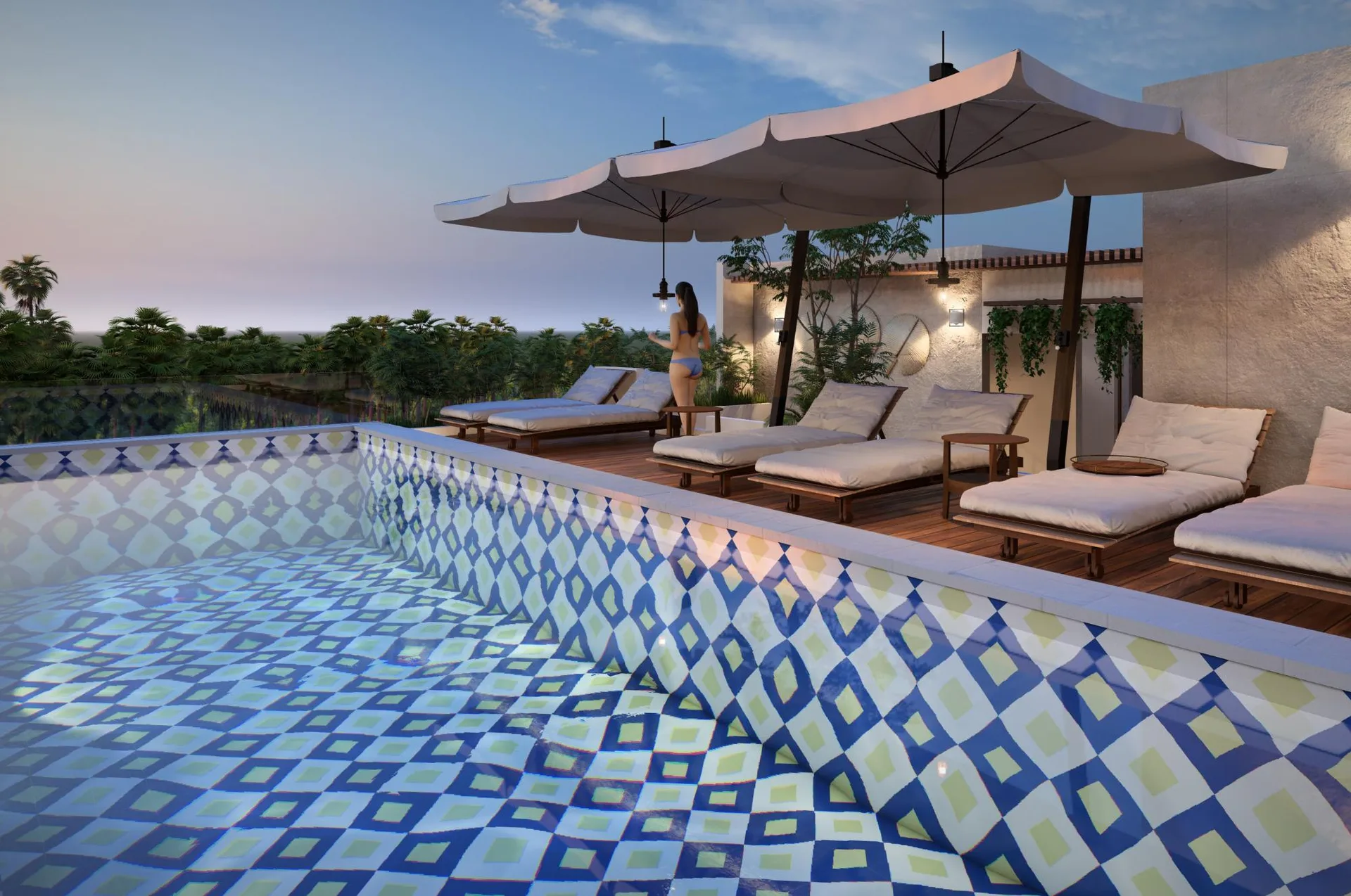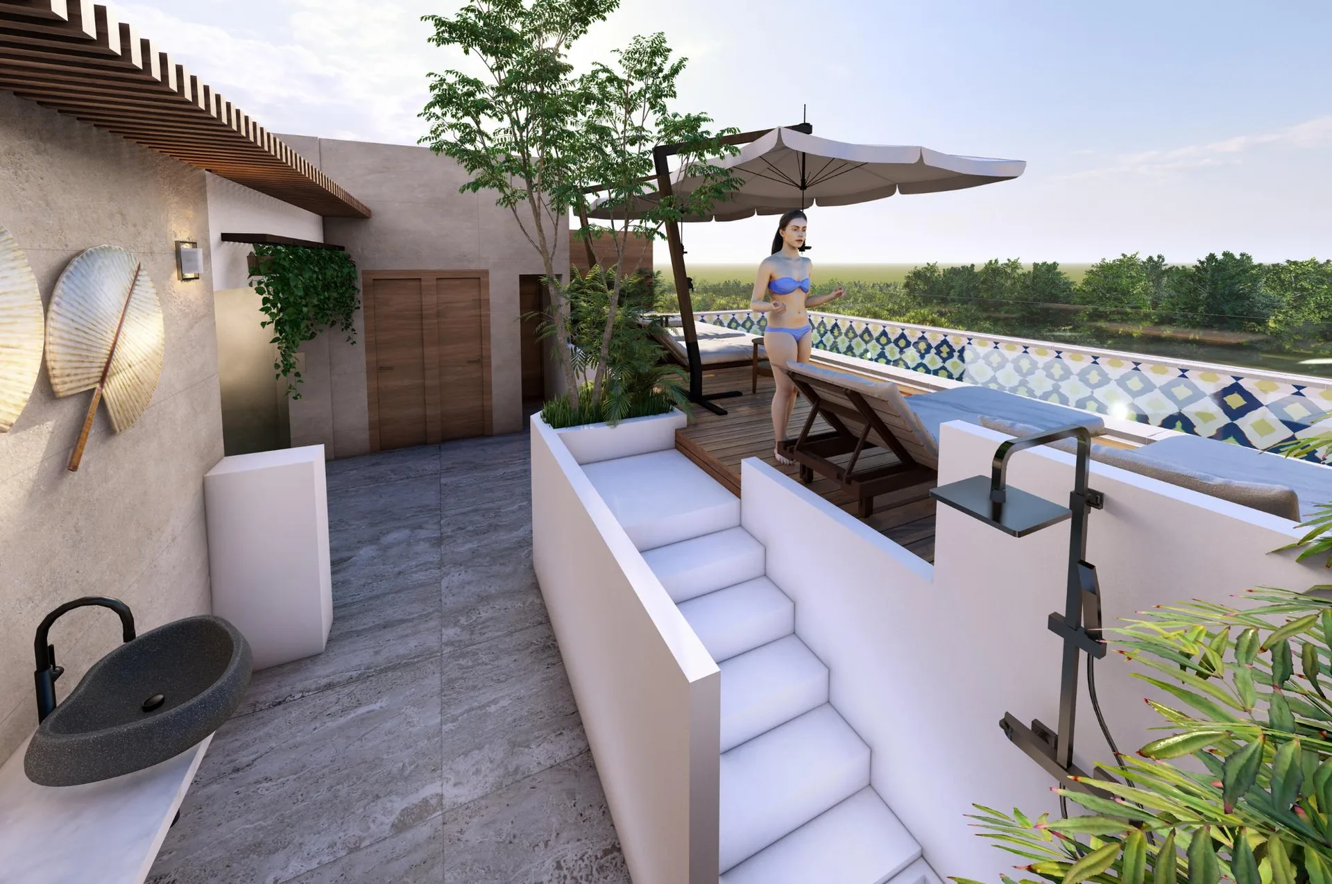 This sanctuary in the heart of the Riviera Maya offers 45 square meters (484 square feet) of intelligently distributed space. The layout features a spacious bedroom and a full bathroom, ensuring privacy and comfort.